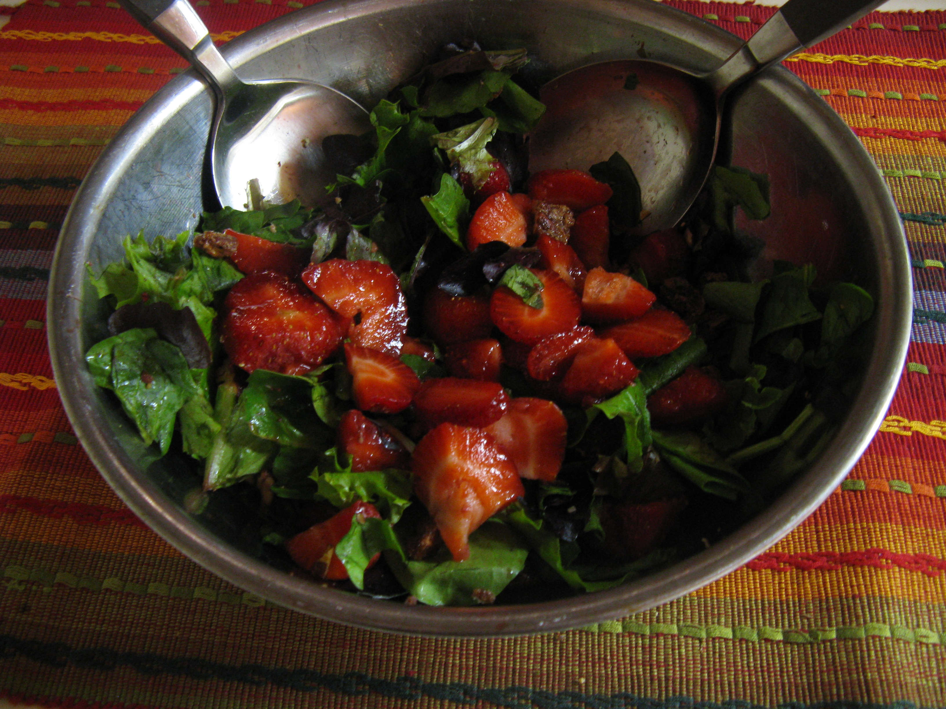 In my recent post, Strawberry Fields Forever, I mentioned this salad and how good it is, especially with the fresh strawberries. It’s wonderful as a side salad to accompany something light, such as pasta salad, roast chicken, quiche, etc., but is also great by itself for lunch – add some crusty bread and a glass of iced tea or white wine and you’re ready to go!