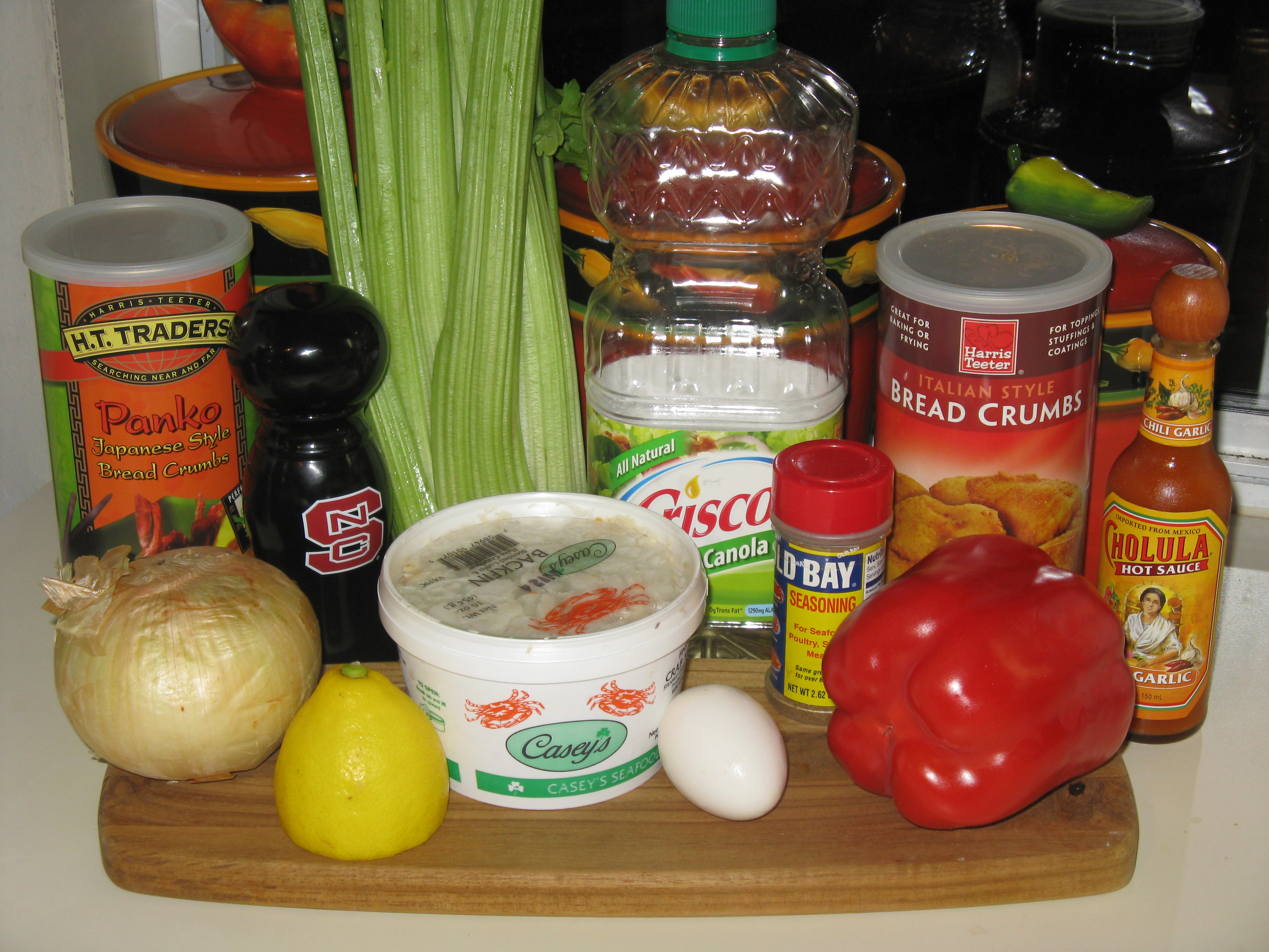 Aaaaah, crabs. I love the sweetness of the meat, whether it’s Maryland blue, Dungeness, rock, Alaskan King or soft shell. I have to admit that sometimes I’m lazy and just buy the fresh crabmeat that comes in the plastic containers. I usually buy it only when it goes on sale –it’s just too expensive otherwise. Then comes the hard decision – do I just sauté it in butter, or do I make crab cakes? Either way is fine with me because both are a treat!