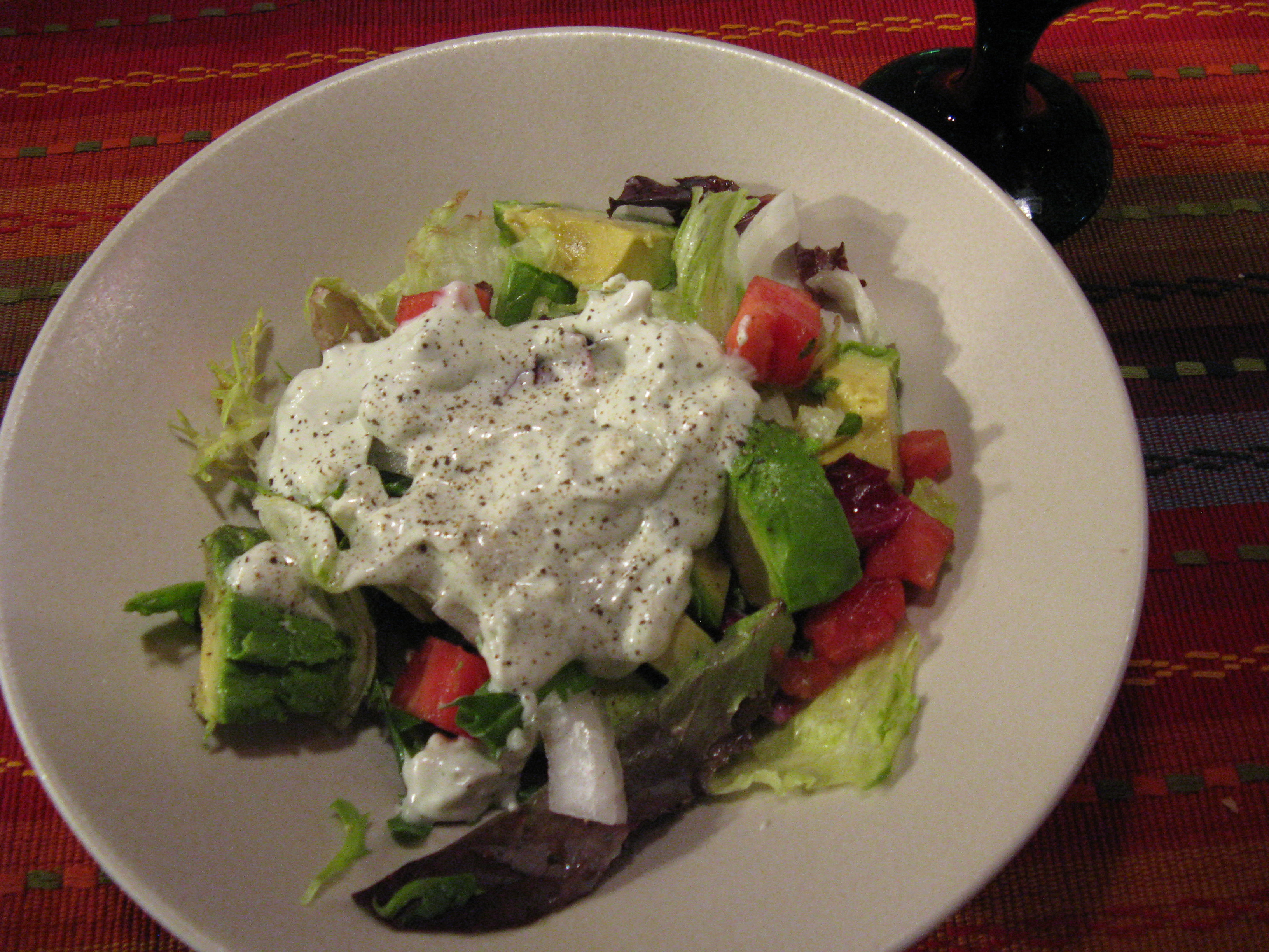 Here’s a picture of a simple tomato and avocado salad with this dressing that I posted earlier this year at: https://kelleychisholm.wordpress.com/2011/03/13/cheats-macaroni-and-cheese/