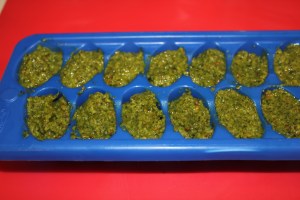 My pesto cubes are approximately 1 ½ tablespoons each – you will want to measure how much each compartment in your tray holds.