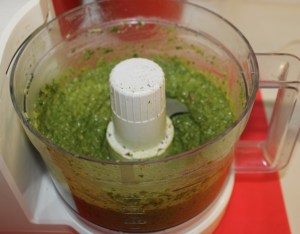 Here is a picture of just one of many pistachio pesto recipes. This one is a yummy pistachio pesto and cheese-filled, bacon-wrapped chicken. I will be posting the recipe soon – it is so, so good!