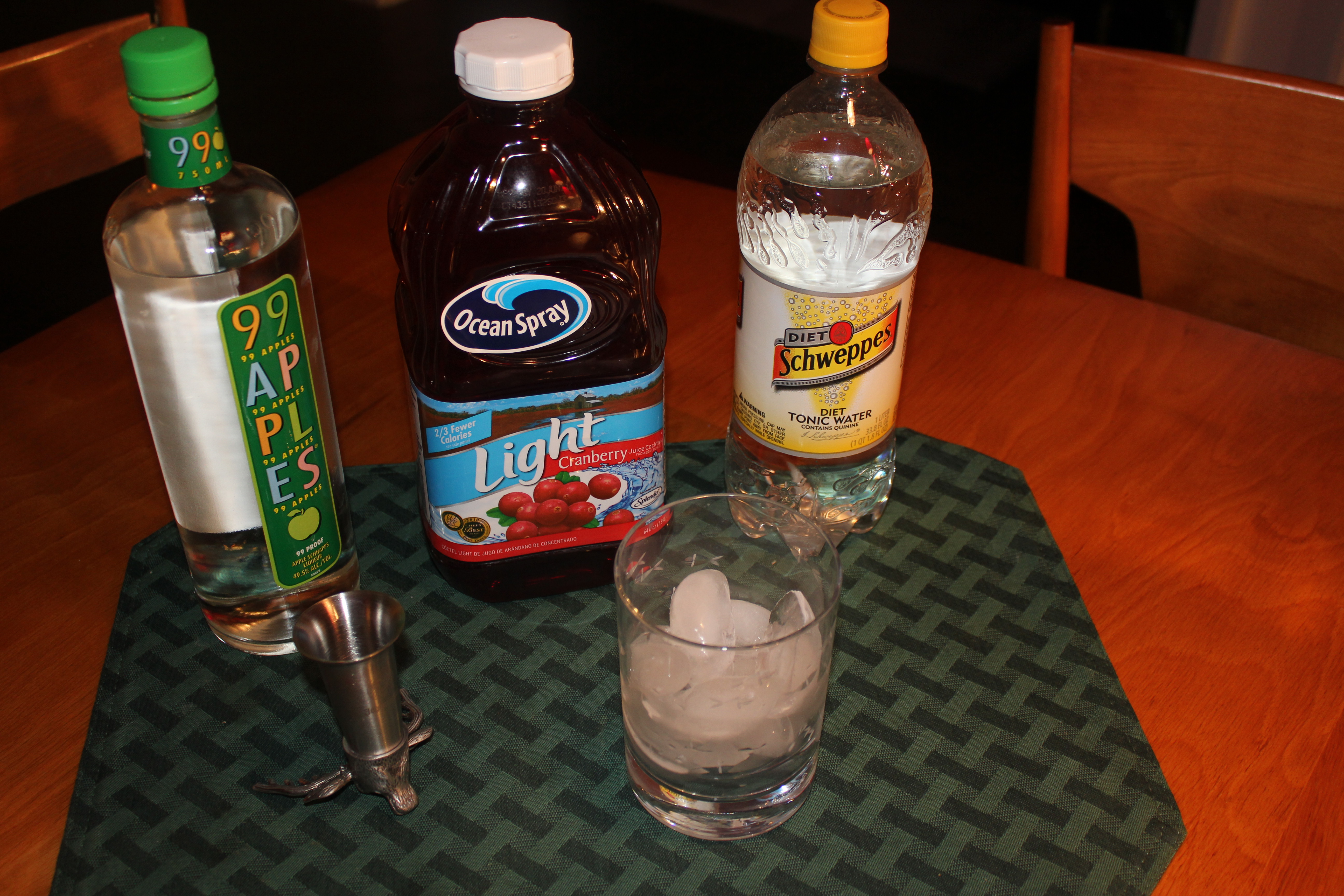 Fill a rocks glass with ice. Add the 99 Apples and the cranberry juice. Top with the tonic water and stir. Garnish with a piece of lime (preferable) or lemon.