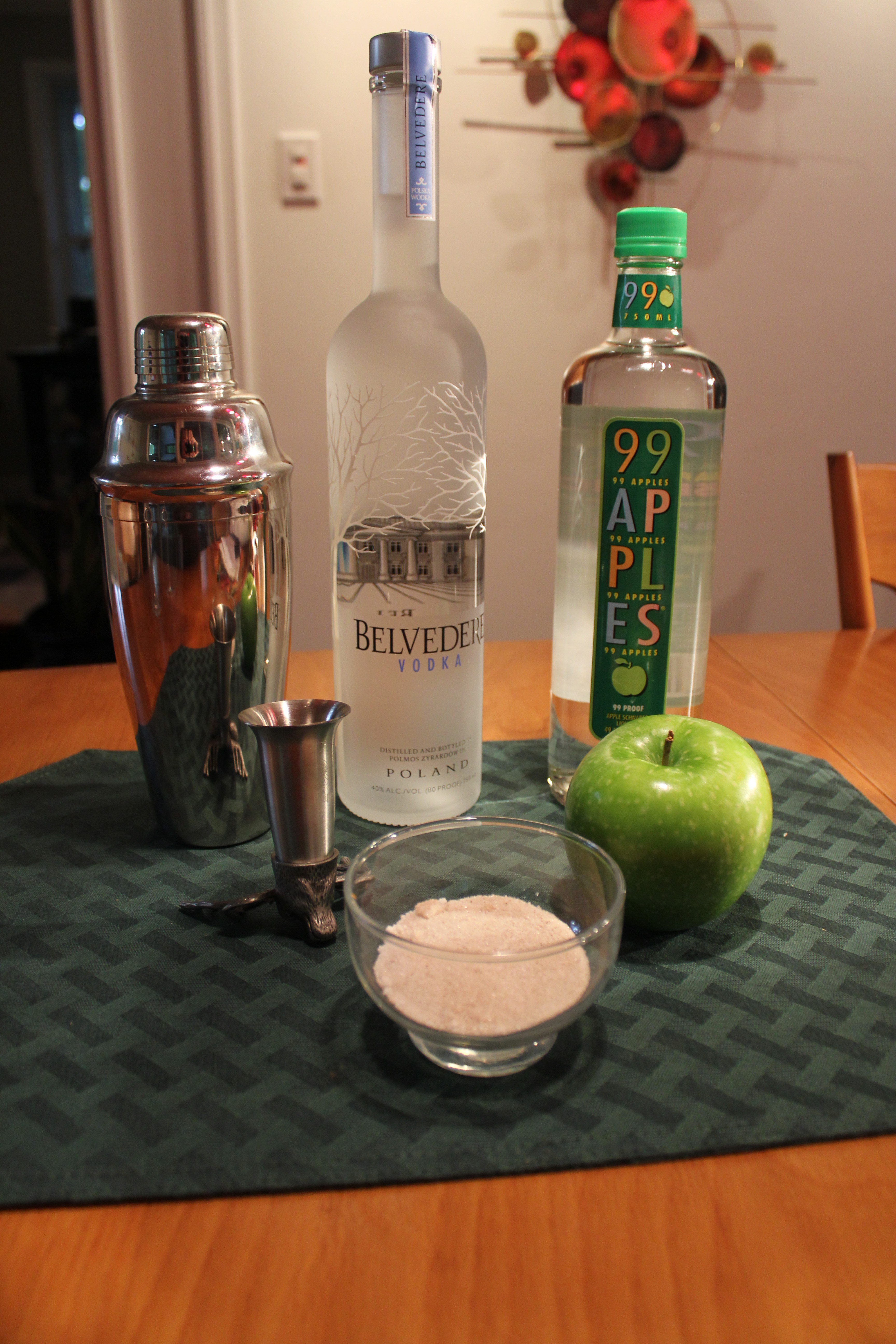 Chill two martini glasses. Fill shaker with ice. Add the vodka and 99 Apples and shake well.