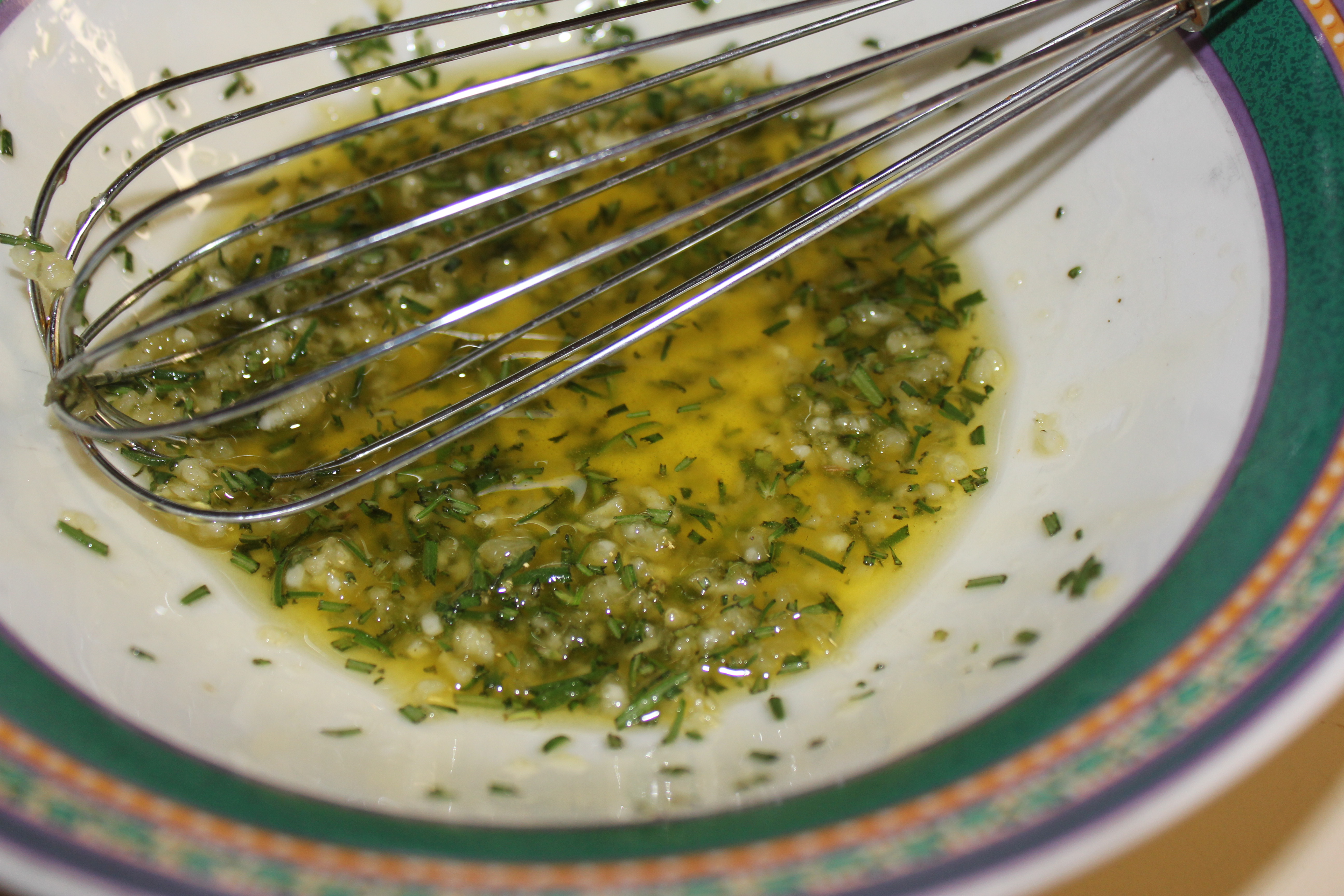 Place olive oil in a bowl and add the rosemary and minced garlic. Whisk until blended.