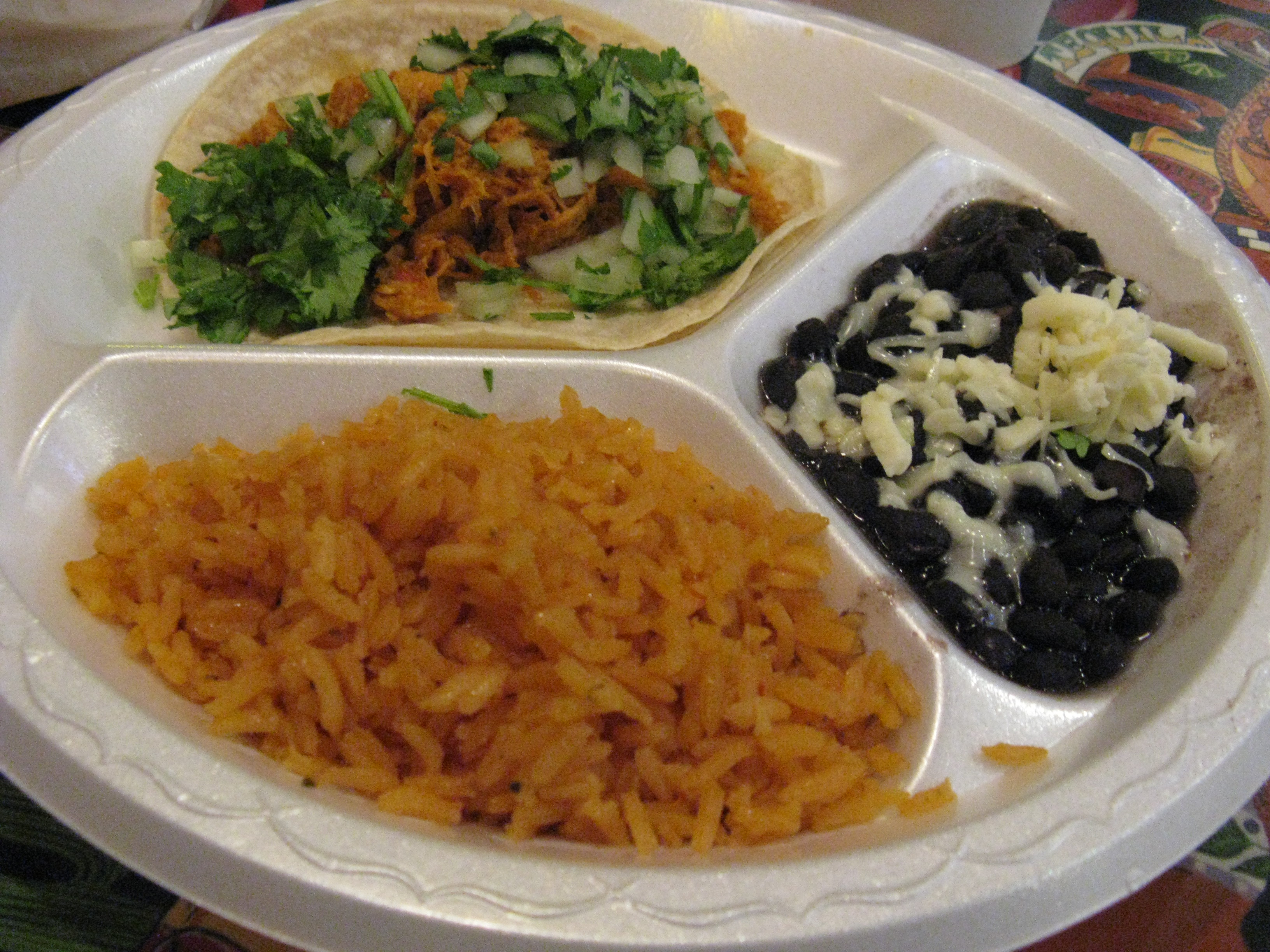 Chubby’s menu includes tacos, burritos, quesadillas, gorditas, taco salads, tortas and nachos. It has a great little salsa bar with a nice variety of homemade salsas. It also has full ABC permits and carries a number of Mexican beers. I’ve heard the margaritas are quite good, but will have to wait for a non-work day to try them. The prices are great – tacos range from $2.00 – $3.00, and there is nothing more than $8.00 on the menu. For $2.00 extra, you can add rice, chips (which are light and warm) and your choice of refried or black beans to whatever you are ordering.