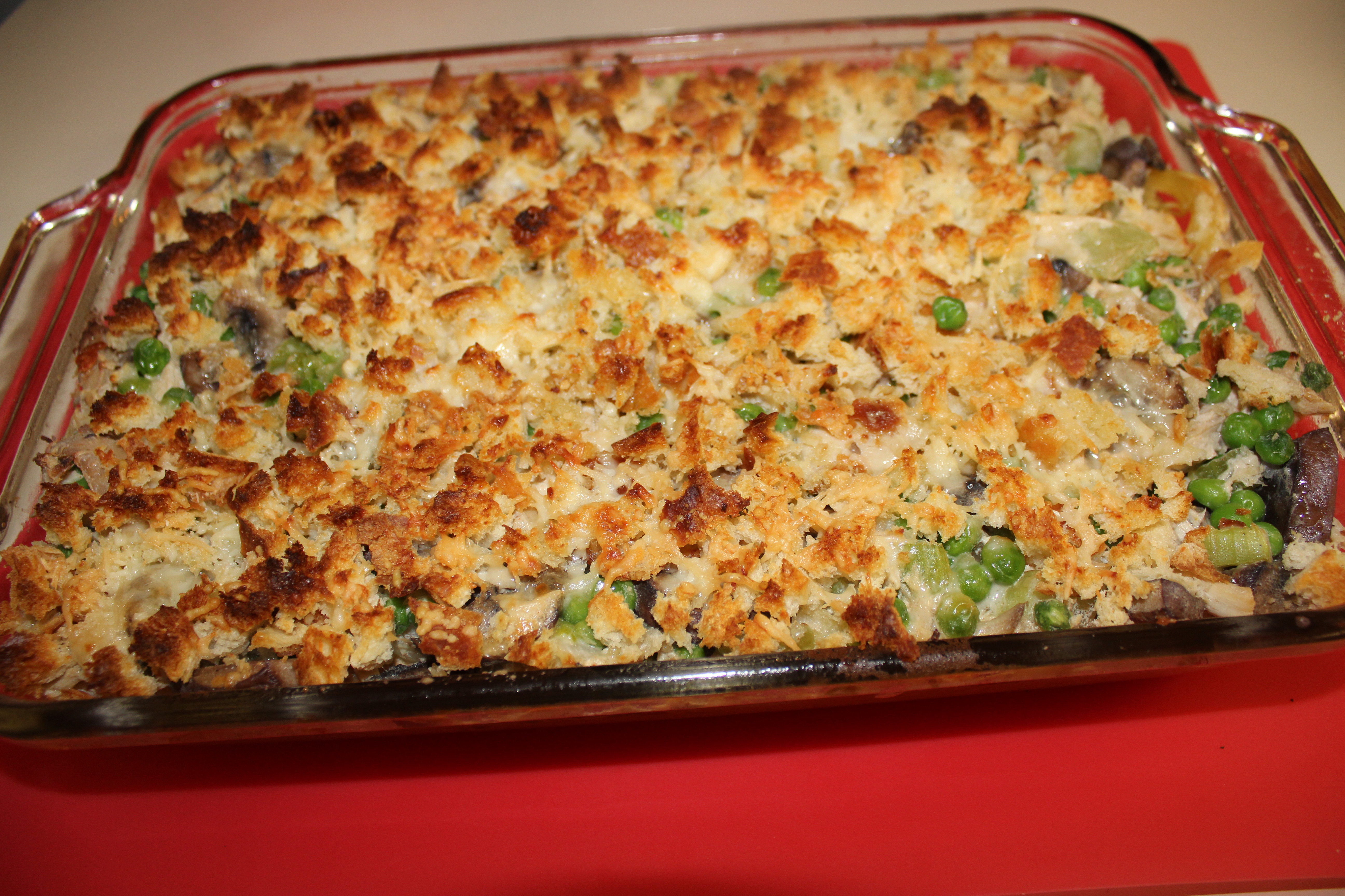 Bake for 20-25 minutes, until the breadcrumbs are brown and the casserole is bubbly.