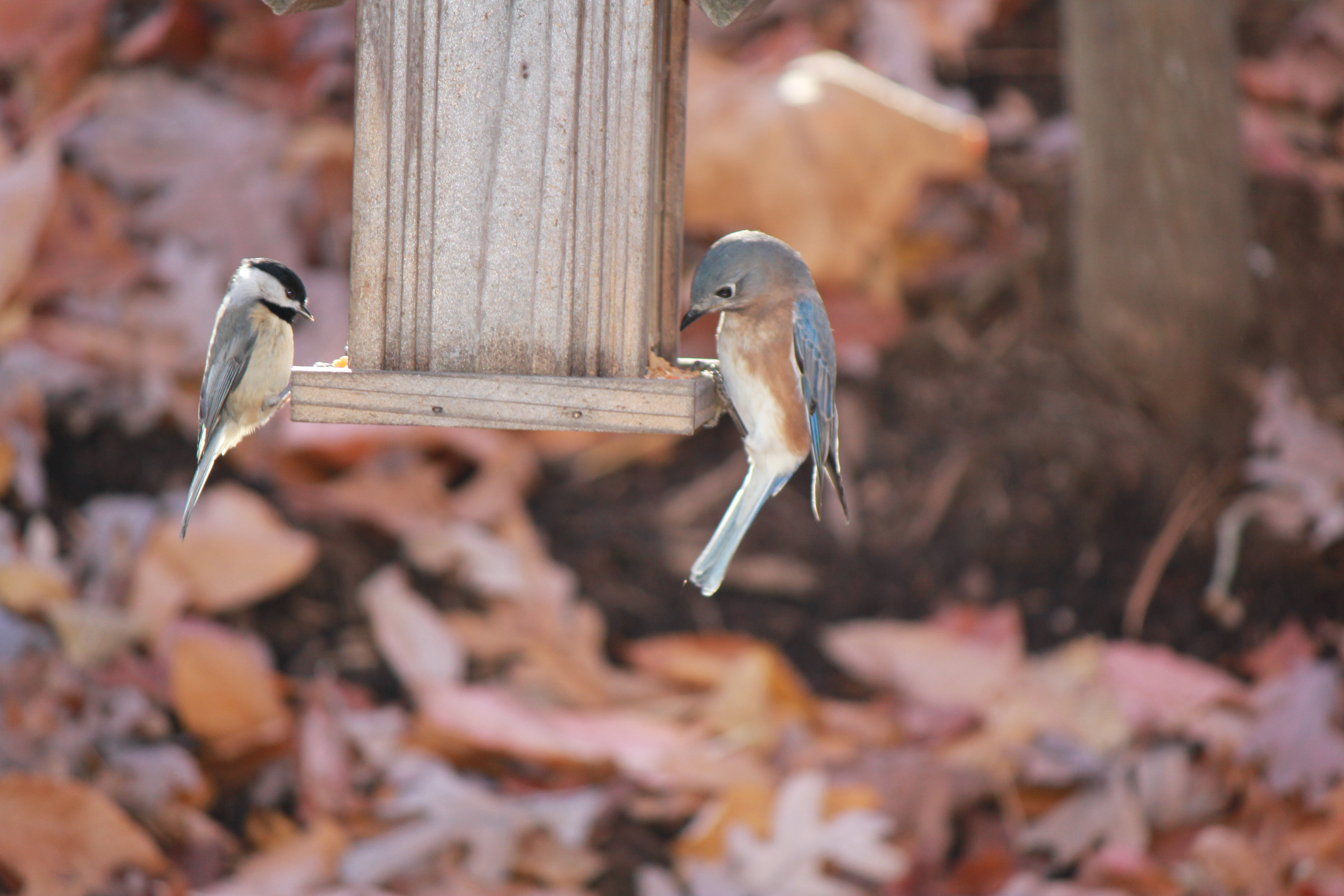 I fill my bird feeders year-round, but now that winter is approaching it is quite important to make sure you are providing a steady food source for your feathered friends. During this time, many seed-laden plants are dormant and insects become more and more scarce. I use assorted types of seeds to attract different types of birds and our feeders enjoy a nice variety of typical songbirds to our area, such as Carolina wrens, cardinals, chickadees, titmice, blue jays, flickers, nuthatches, bluebirds, goldfinches, juncos, purple finches, ruby-throated hummingbirds, various sparrows, mourning doves, downy woodpeckers, etc.
