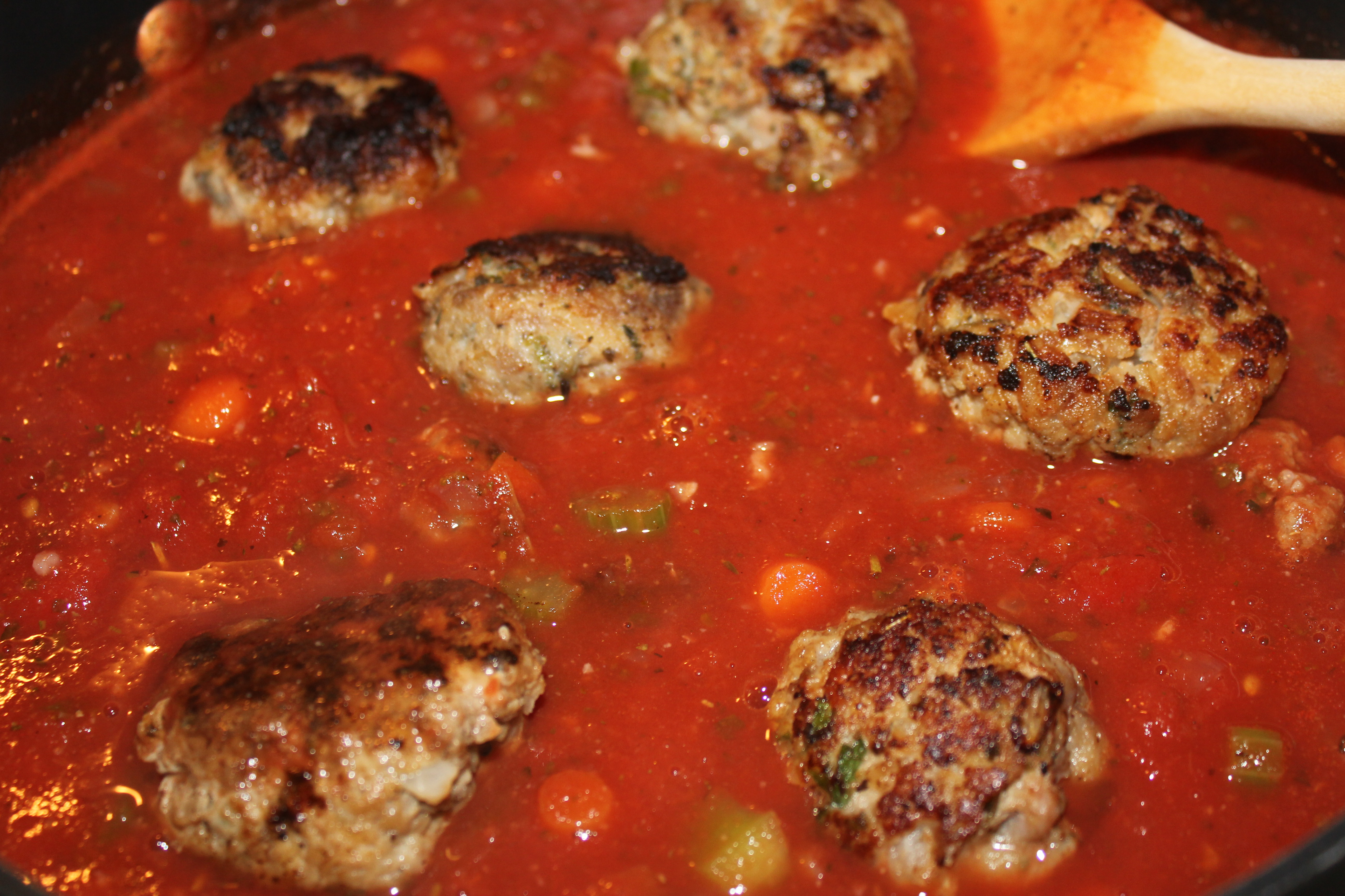 After you have made your marinara sauce (see recipe below), add the meatballs and let simmer for 20-30 minutes or so before serving.