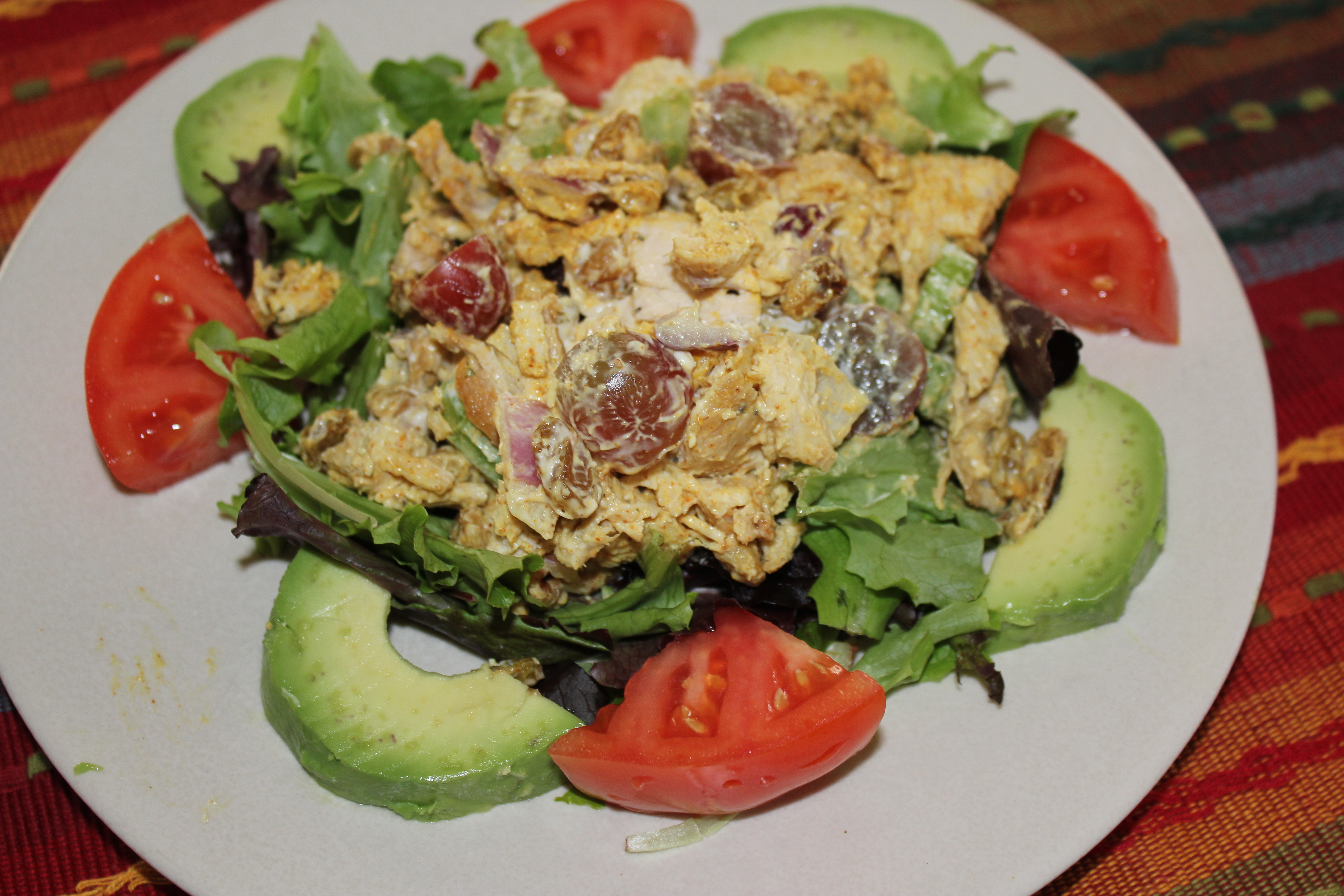 The first time I ever tried curried chicken salad was back in the mid-1980s when I was in graduate school at UNC. I had an assistantship at the U.S. EPA’s library, which at the time was in Research Triangle Park, about 20-25 minutes from campus. At least once a week I gave a ride to Hester (I can’t remember her last name), who also had a graduate assistantship at the EPA. Since I wouldn’t take any gas money from her (I was going there anyway) she made lunch for me sometimes, and her chunky, curried chicken salad was definitely my favorite. It was so different from the chicken salad I usually made (I’ll share that recipe in a separate post) and I loved the sweetness of the raisins and grapes, the crunchiness of the nuts and the spiciness of the curry. I’m not sure of her exact recipe, but after practicing these many years, this comes mighty close.