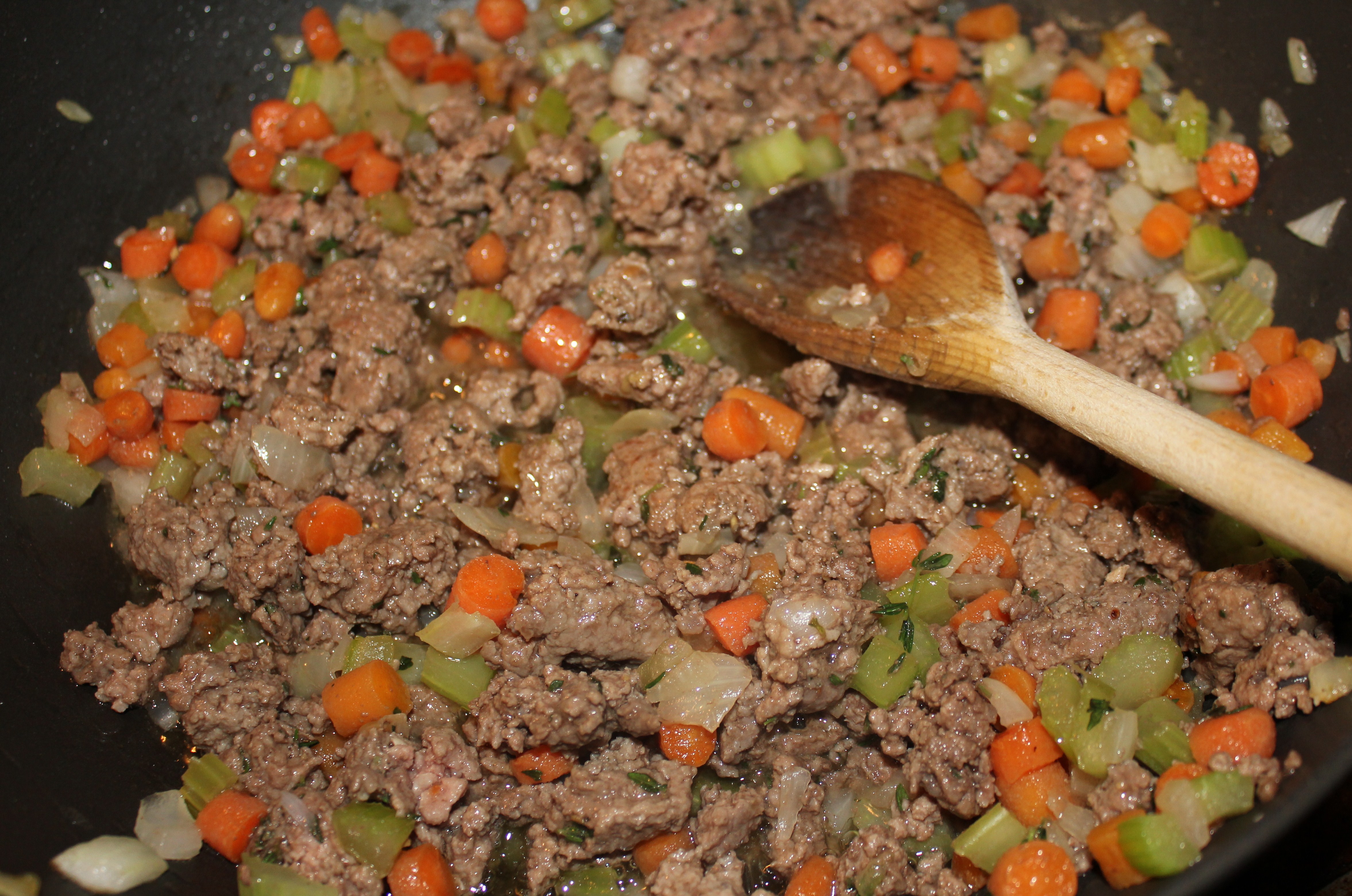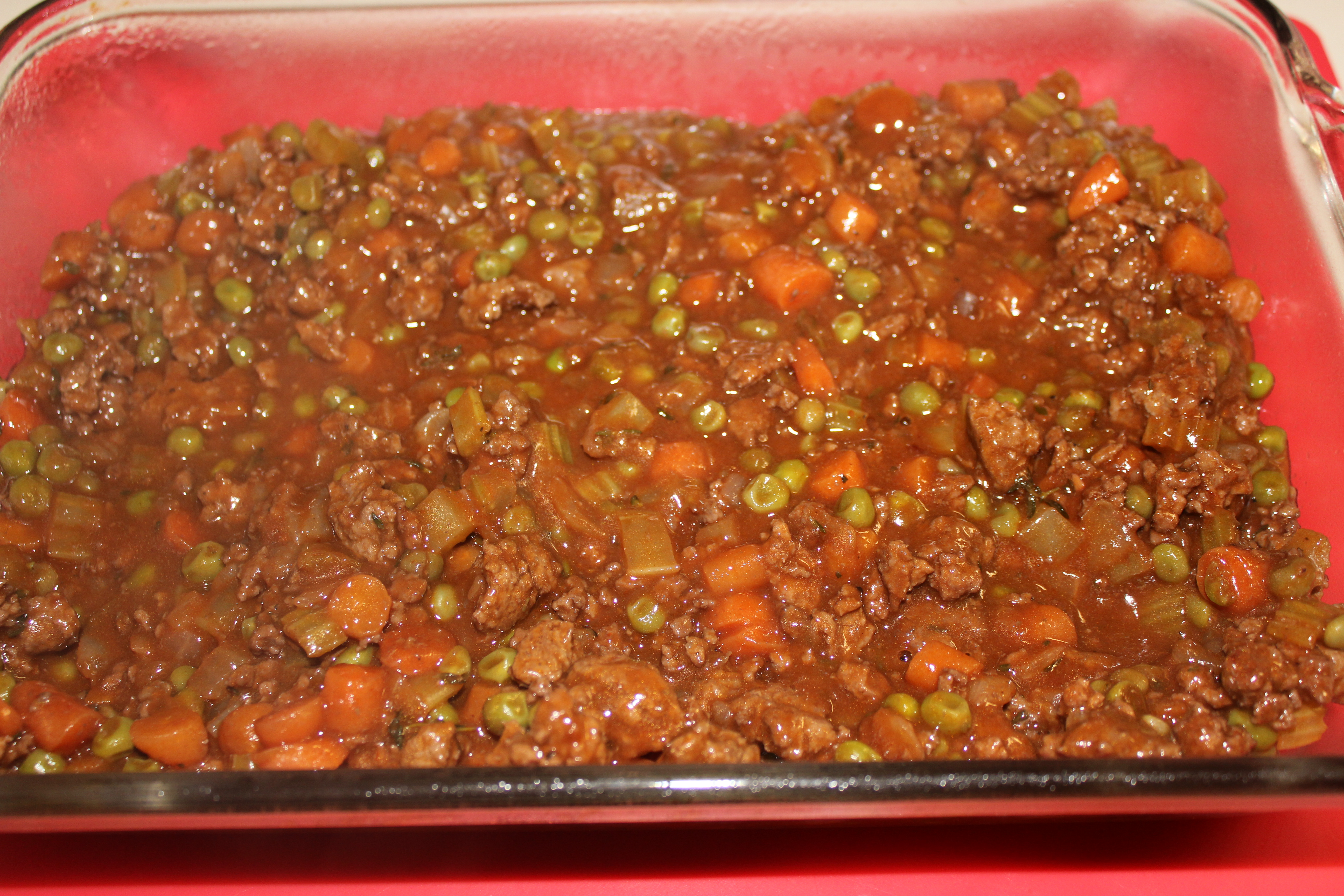 Grease a 9”x13”casserole dish (I use cooking spray) and add the lamb and veggie mixture.