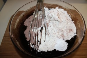 Add the flour, pudding mix and baking soda, and whisk until it’s well blended.