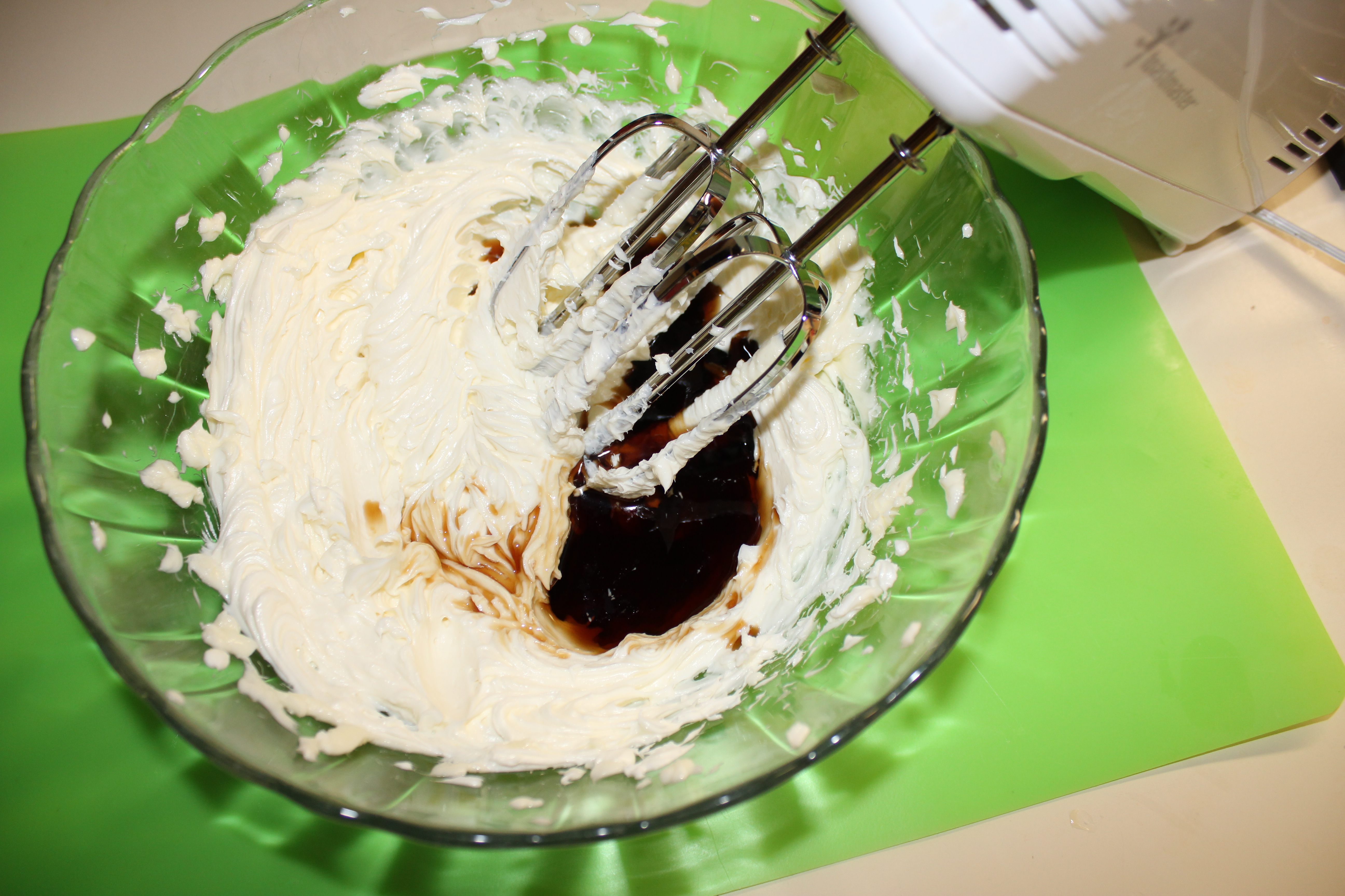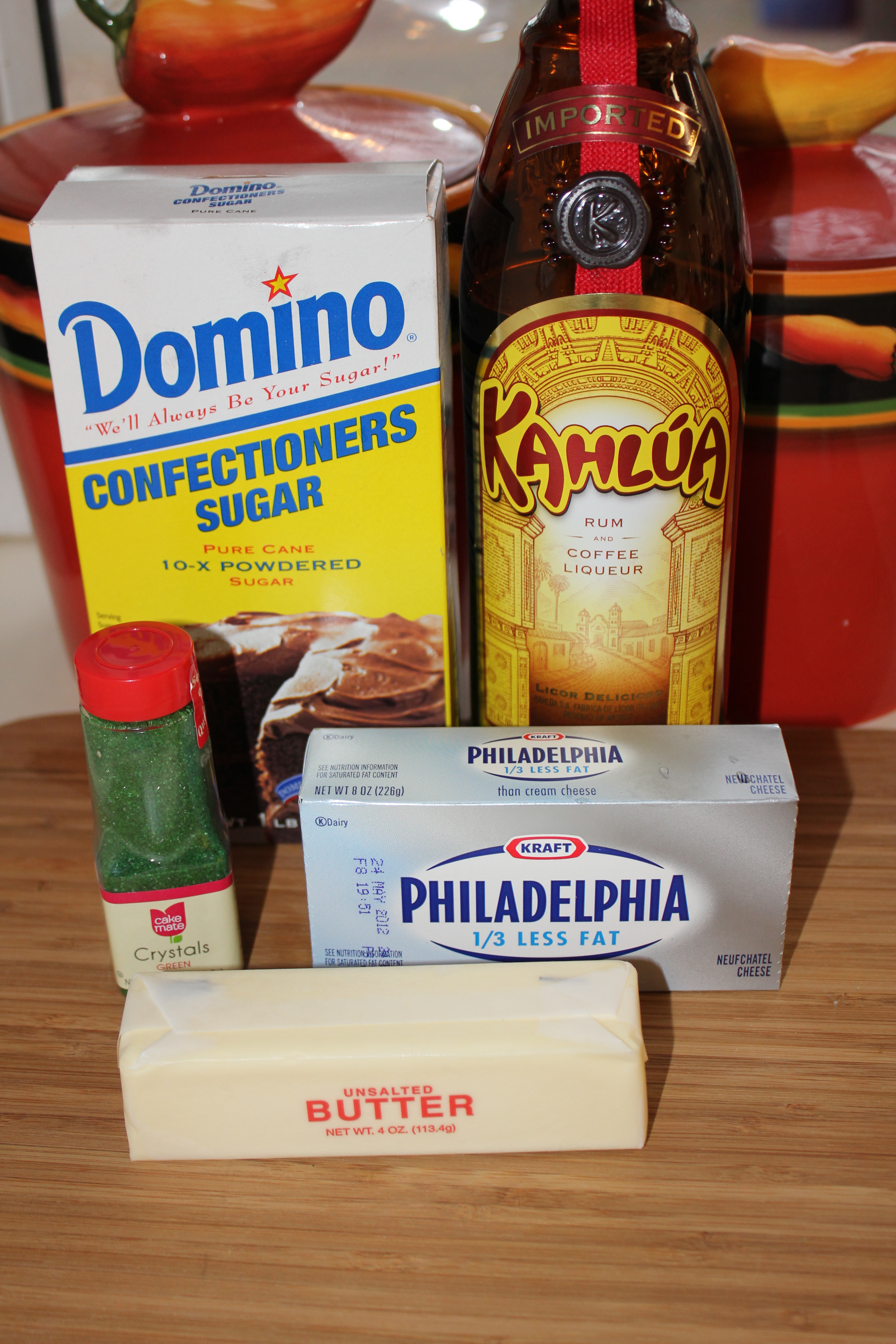 Blend together the cream cheese and butter with an electric mixer. Mix in the Kahlúa. Add the confectioner’s sugar and beat until nice and smooth.
