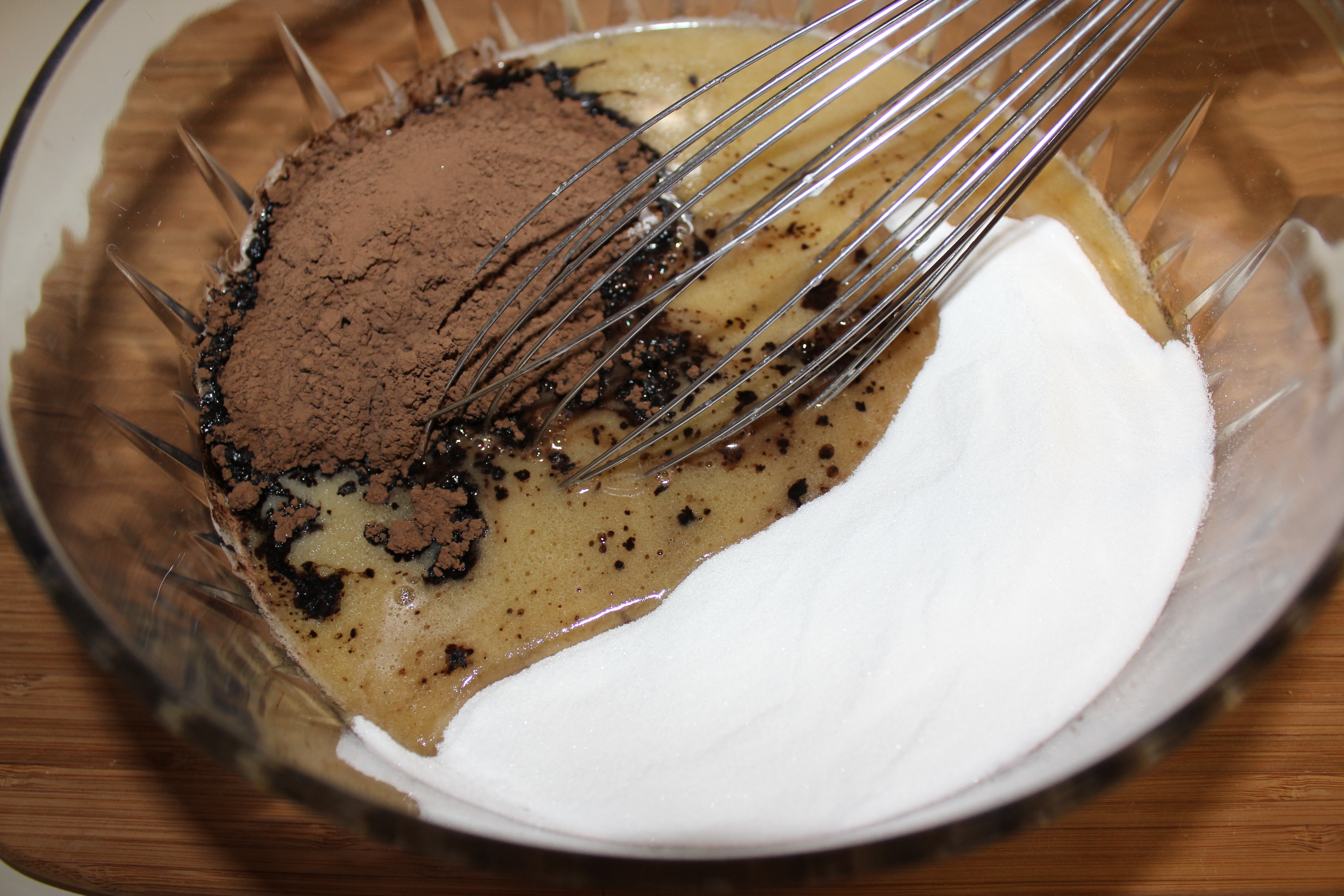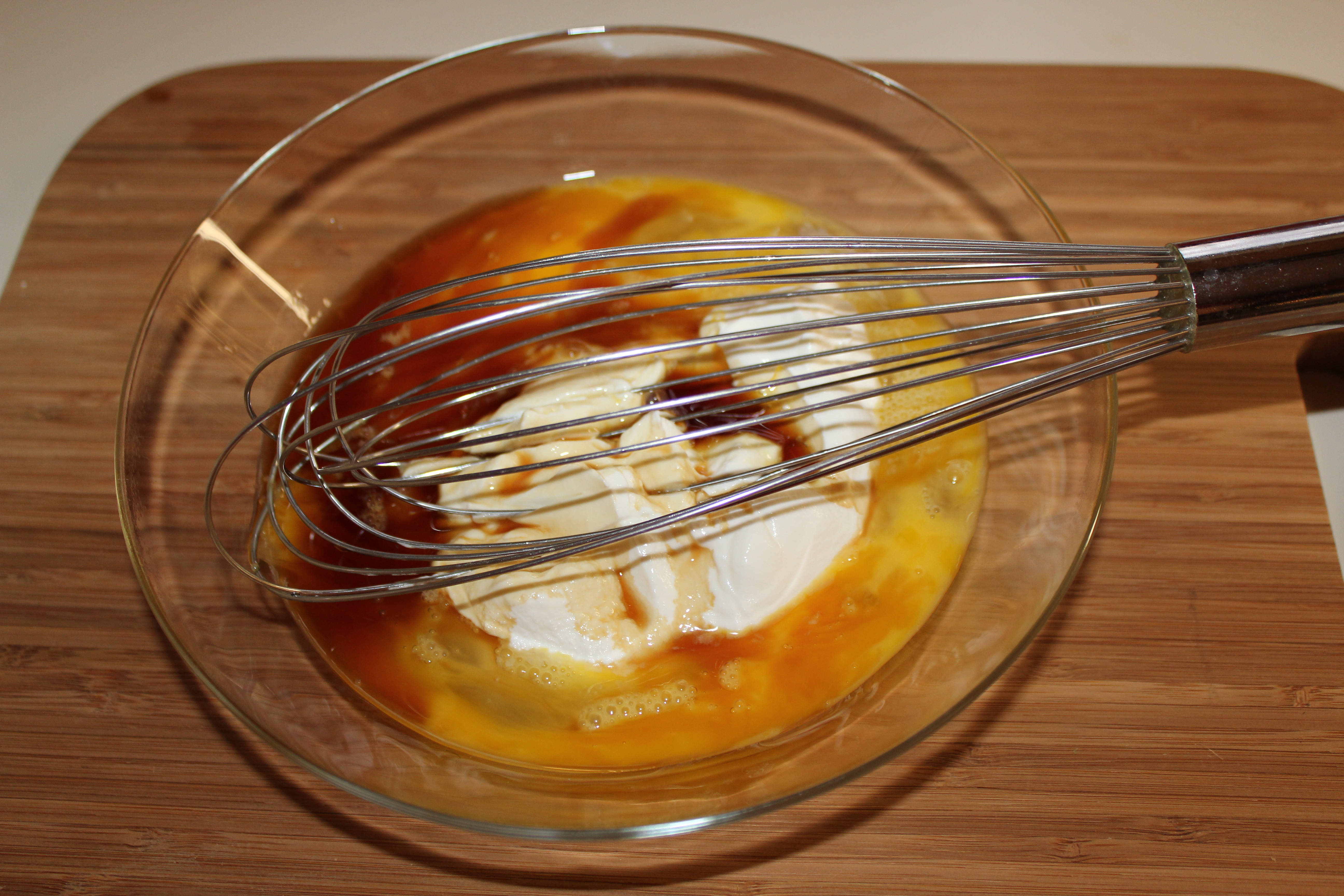 In a separate bowl, mix the sour cream, eggs and vanilla until nice and smooth, and add to the Guinness mixture.