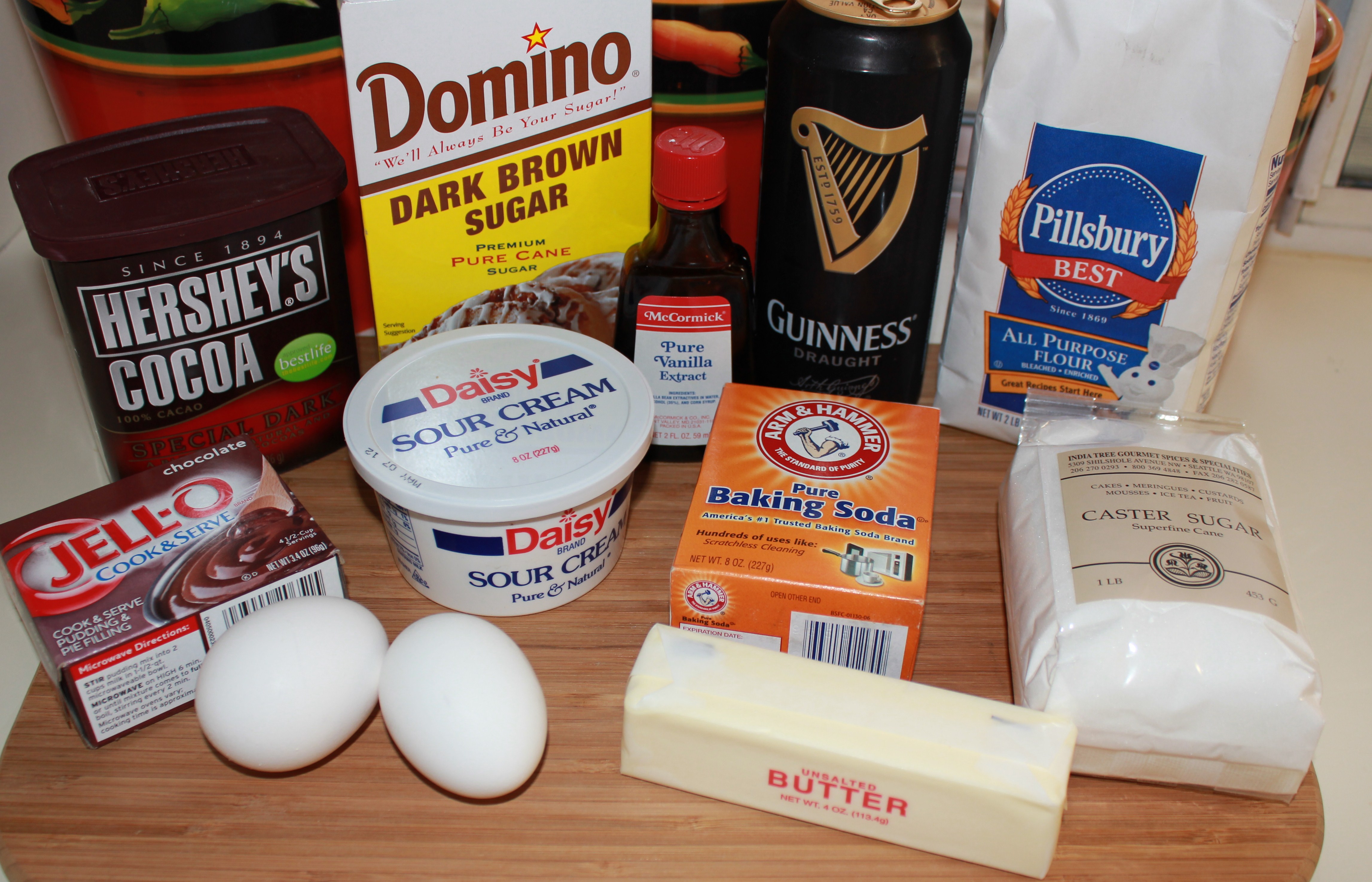 Here’s a great recipe that calls for beer in the cake batter. Beer in cake? That’s right – beer in cake. But not just any beer, oh no – this calls for Guinness, of course! If you’ve been reading my blog, especially recently, you have probably come to the conclusion that Guinness is one of my favorite beers. I like cooking with it almost as much as drinking it (check out my recipes for homemade Beer-cheese bread, Slow-cooker Irish stew, Shepherd’s pie and Corned beef and cabbage.)