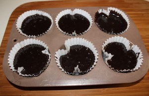 Place lining papers in muffin tins. Fill each with the batter, almost to the top. Bake for 20-25 minutes, until a toothpick comes out clean from one of the muffins. Cool completely.