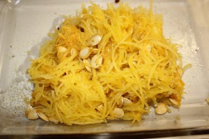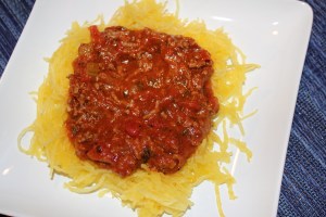 The other night Lexi wanted spaghetti with meat sauce for dinner. It had been a while since I’ve made it since Brad has been watching his carbs lately. I suggested we feed the kids regular noodles and that we have spaghetti squash instead. He was game, as we both had eaten this before when we tried the Atkin’s diet years ago. (Disclaimer – I am by no means advocating Atkin’s plan – always check with a health professional before starting any diet.)