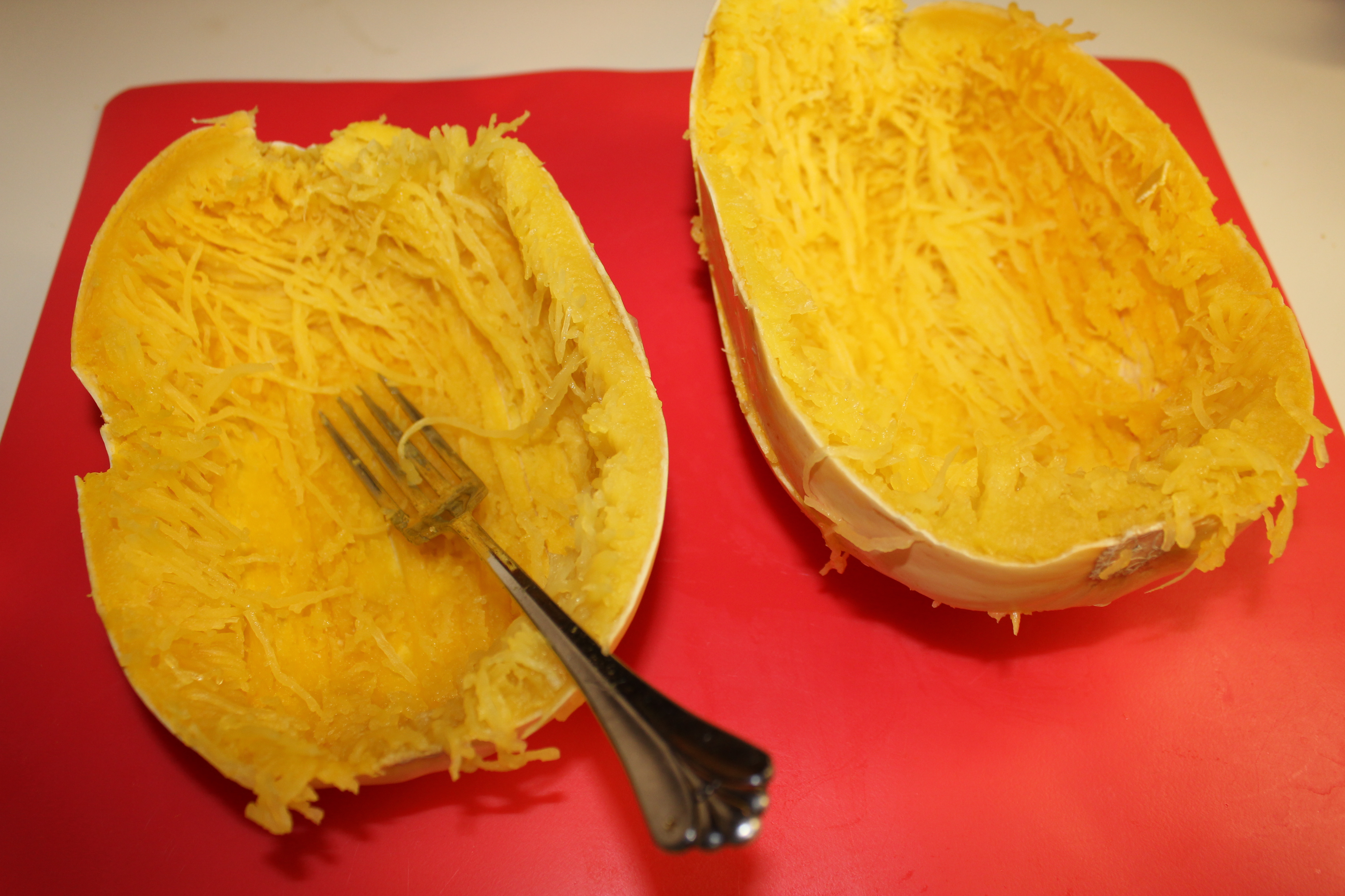 Gently scrape the cleaned squash with a fork and shred the pulp into spaghetti-like strands.