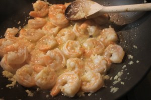 Stir in the shrimp and sauté for a couple of minutes, just until they turn pink. Remove the shrimp from the pan.