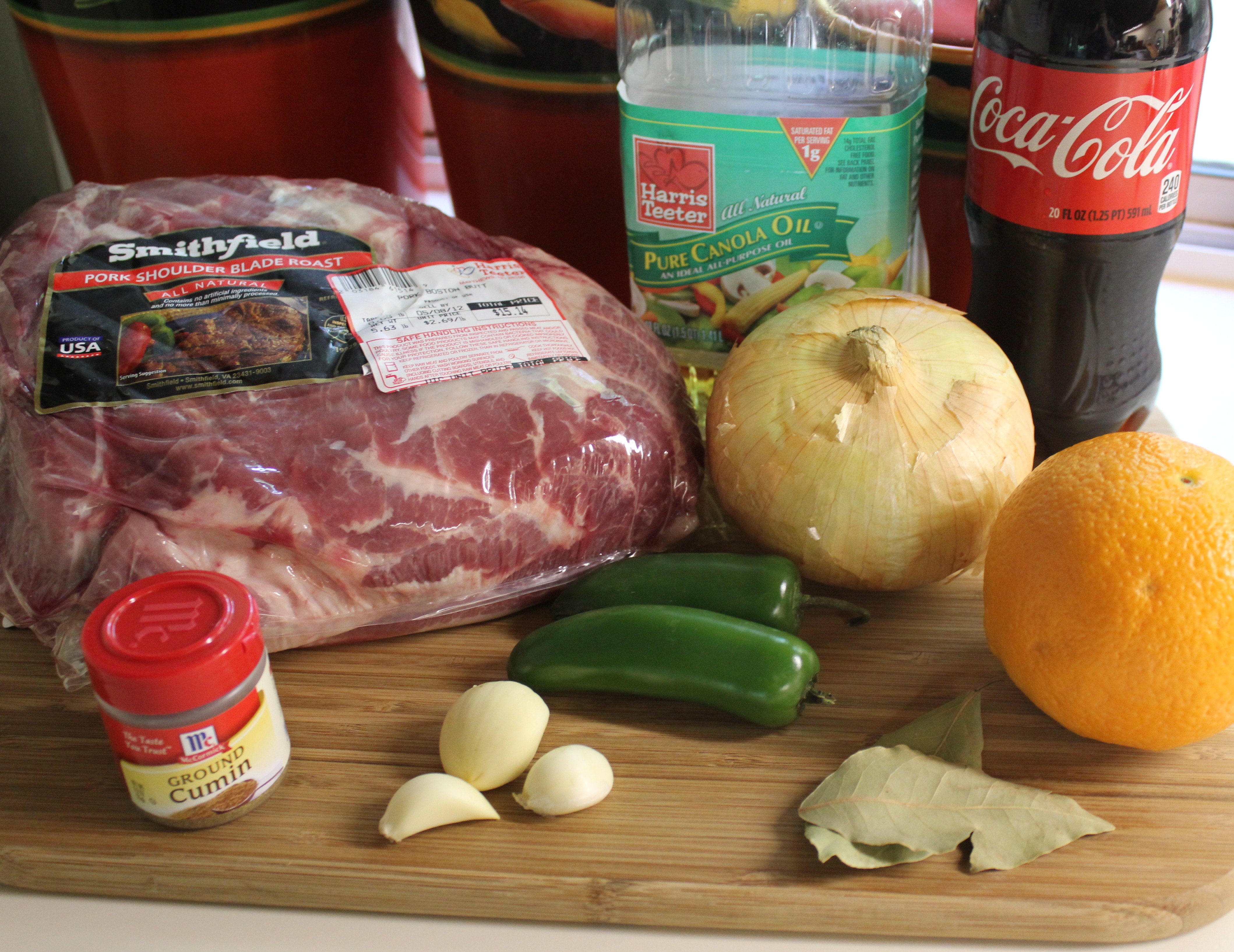 For my carnitas, I pulled ingredients from a handful of recipes, plus took the advice of a server in one local restaurant who suggested I slow cook the pork in cola, which acts as a great meat tenderizer. I am glad I did because it was melt-in-your-mouth delicious. This is so easy to make and the only thing I will do different next time is to double the amount of jalapeños and garlic.
