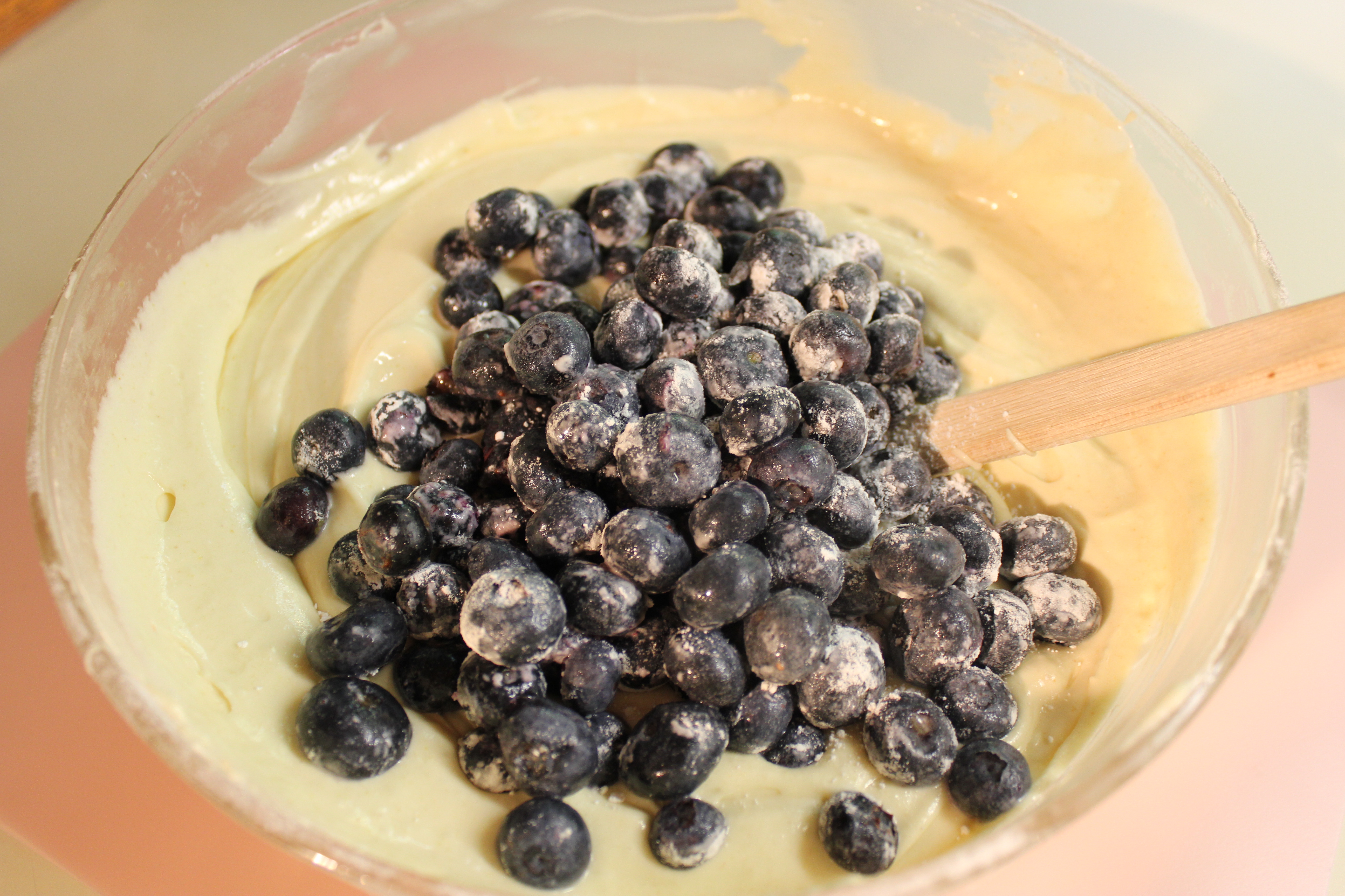 Fold in blueberries with a spoon. Pour the mixture into the bundt pan.