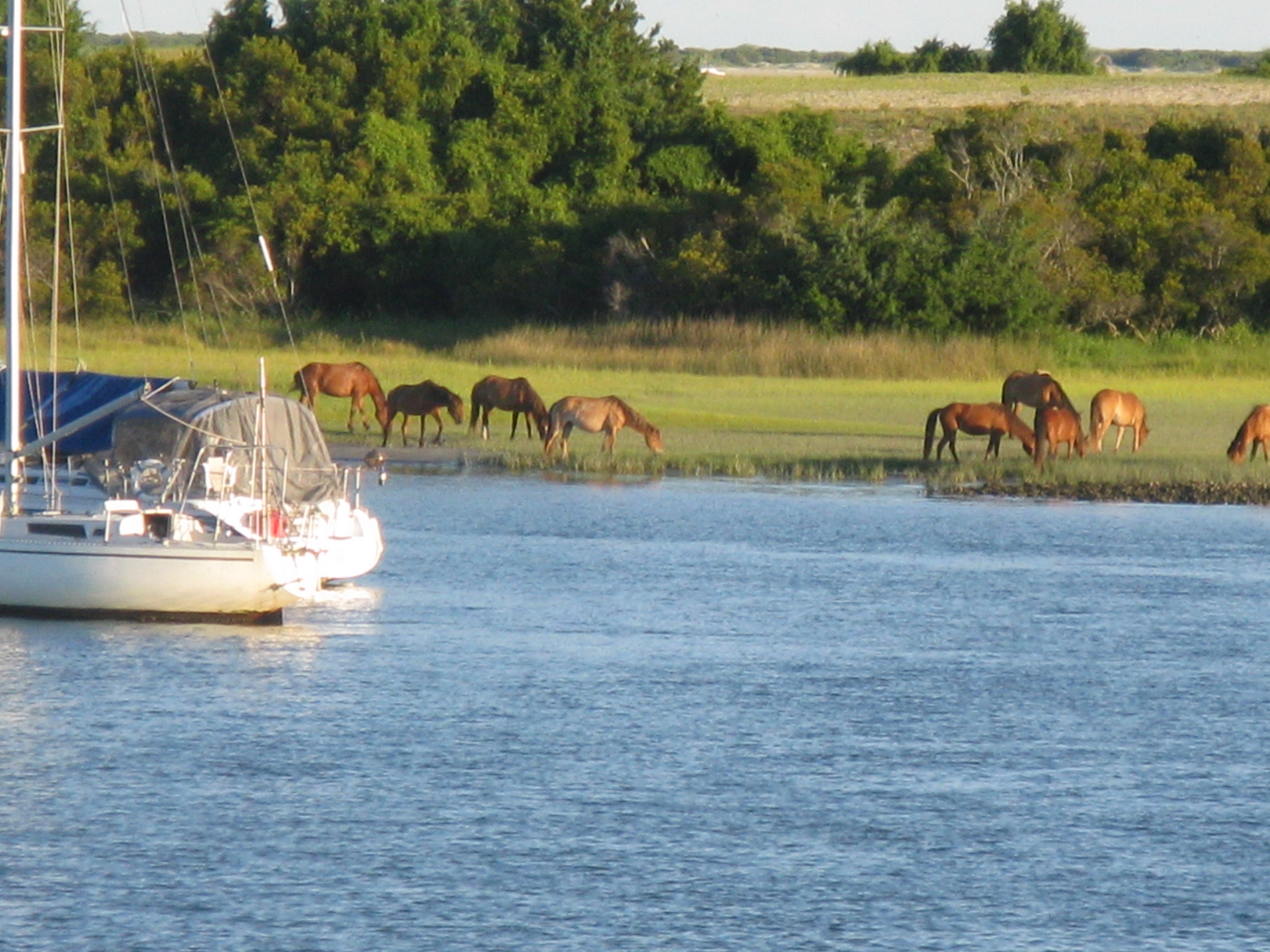 This is a Beaufort institution and appropriately named as it is right on the dock. If you are lucky you may get to see the wild horses on Carrot Island, which is just across the canal. There is nothing pretentious about this place. The food is okay, nothing special, really, but the Bloody Marys are fantastic.