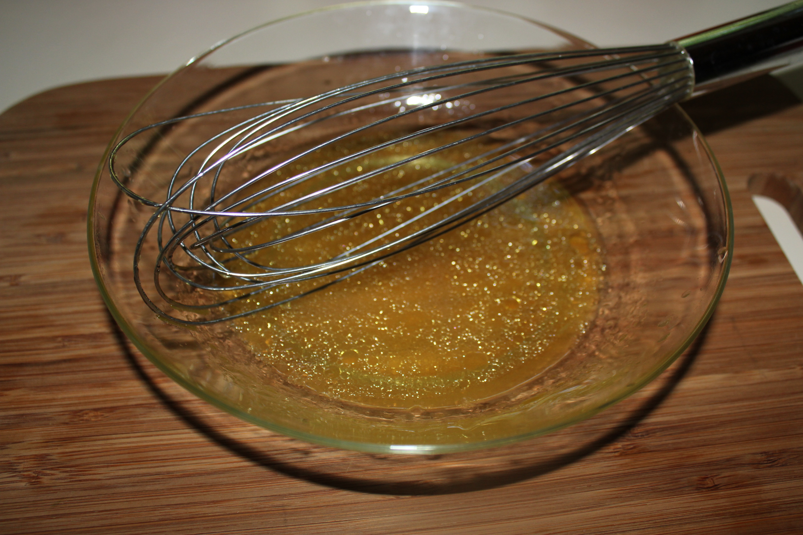In another bowl, whisk together the olive oil, honey, vinegar and lime juice.