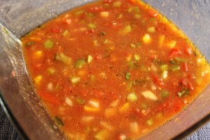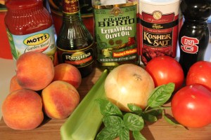 Chilled soups are so good in the summer and gazpacho is one of my favorites. You may remember my post last year for a traditional gazpacho, full of fresh tomatoes, corn, celery, cucumbers, onion, etc. This year I decided to add peaches to the tomato-based soup, and this is what I came up with. The peaches and tomatoes blend so well with each other and the celery and sweet onion give it an added crunch. I’m not sure which version I like better!