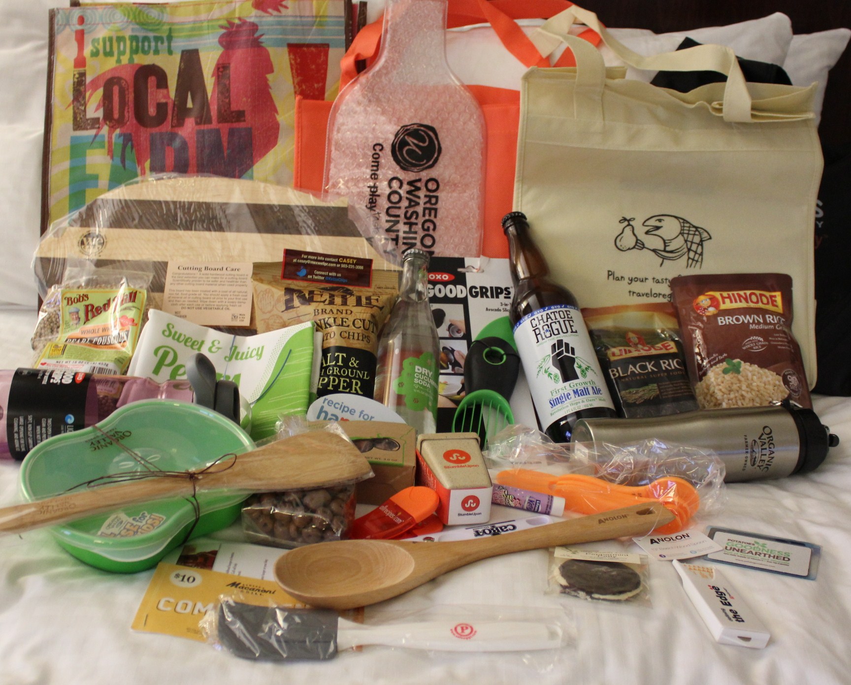 A Taste of Oregon and Gourmet Fair ended the evening – talk about swag! I took a lot of it, wondering how I’d get it home. I didn’t check luggage for the 5-day across-country trip, so the two bags I carried on were already heavy, especially with a laptop in tow. However, I solved the problem by shipping most of it home, thanks to fellow blogger Jennie Chen of MisoHungryNow.com, who had an empty box and packing tape.