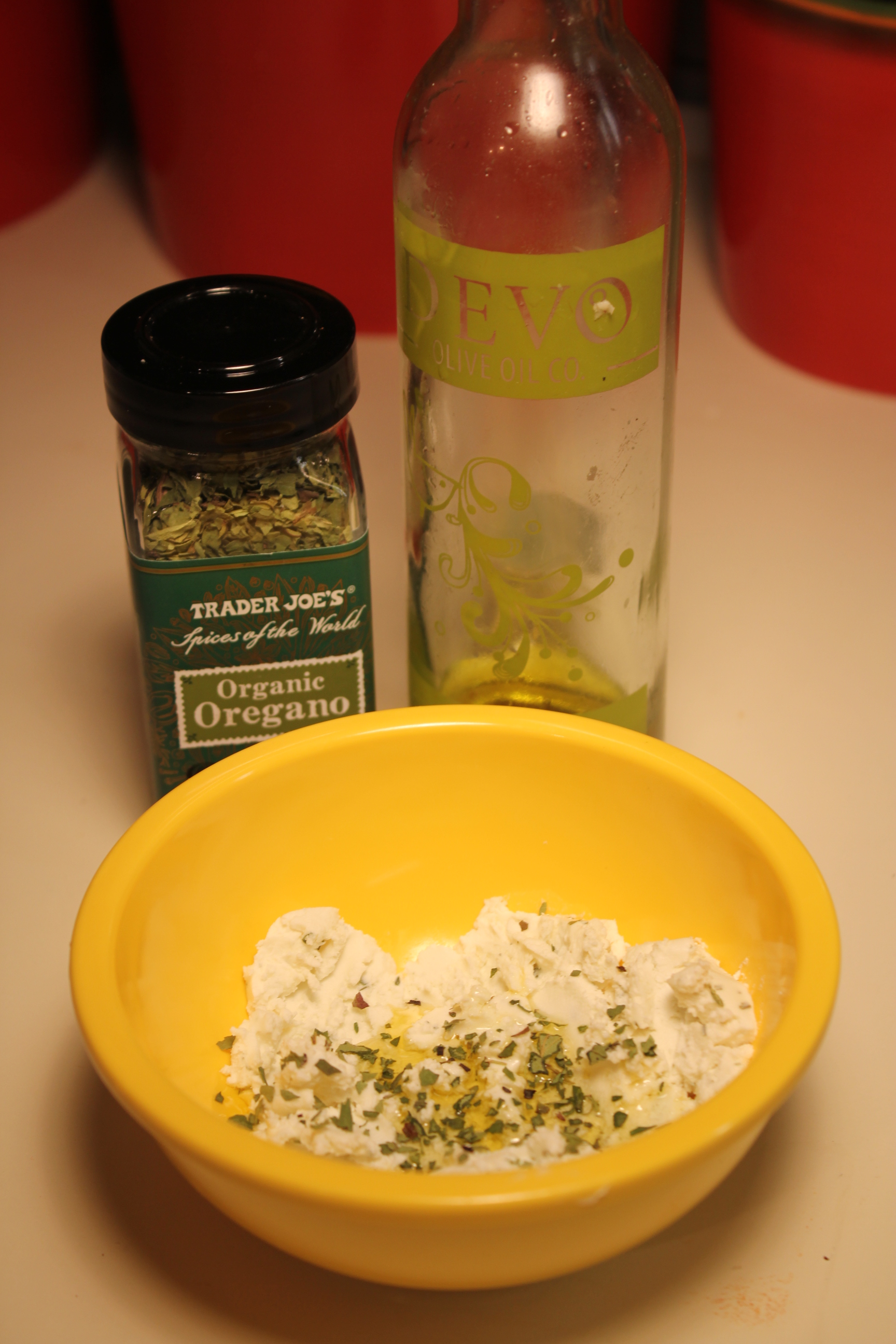 Mix the goat cheese, olive oil and oregano and refrigerate for 5-10 minutes.