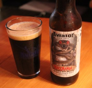We also purchased a 22 oz. bottle of BlackMamba Oatmeal Stout (6.5% alcohol.) Aviator’s website describes this stout as having has an explosion of flavor created by dark roasted grains and a 2-row barley, with tastes of chocolate and smoothness from the oatmeal. This beer is aged in bourbon barrels.