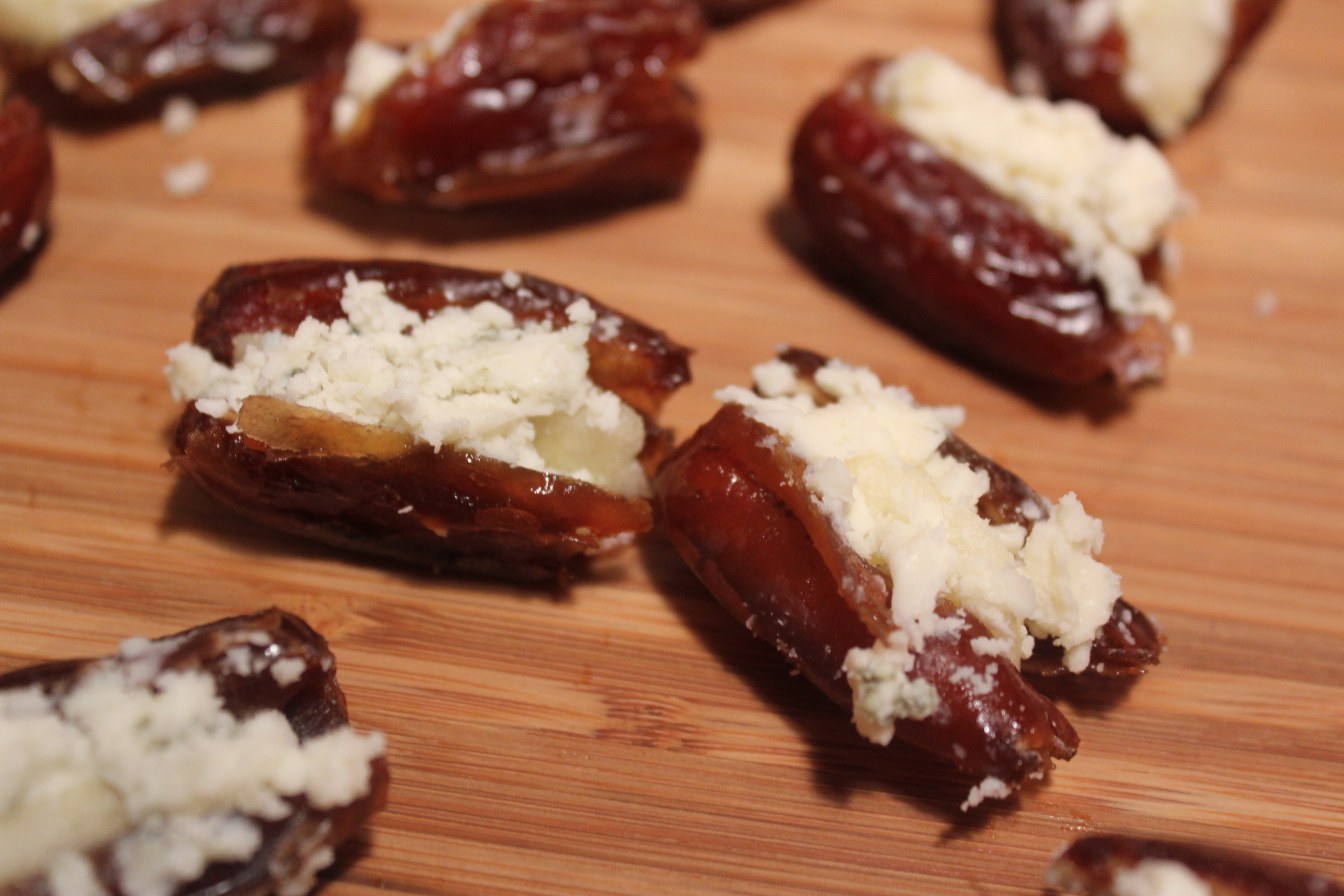 Add a few crumbles of bleu cheese to the dates.