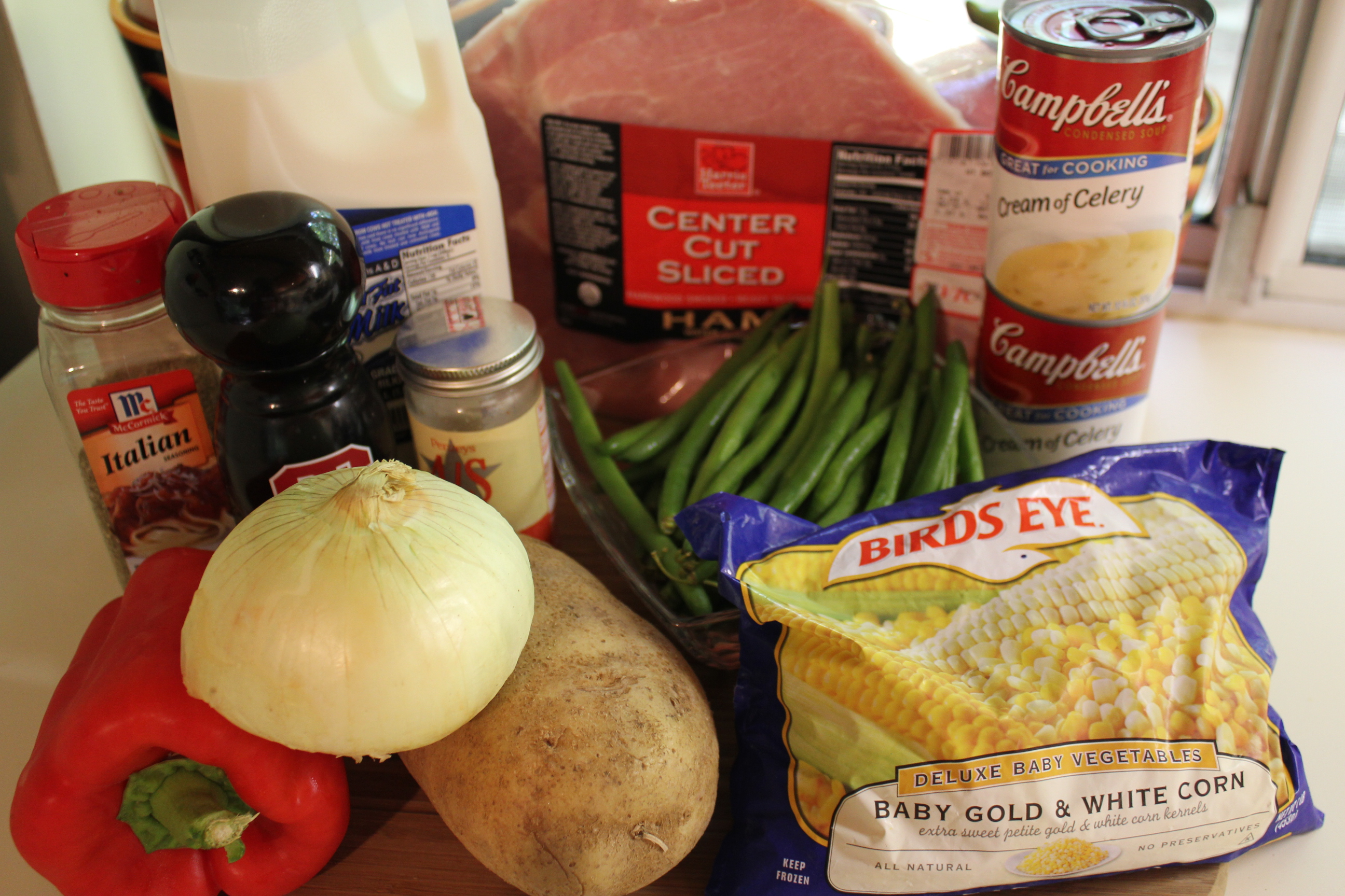 - 2 cups ham, fat removed and diced into bite-sized pieces