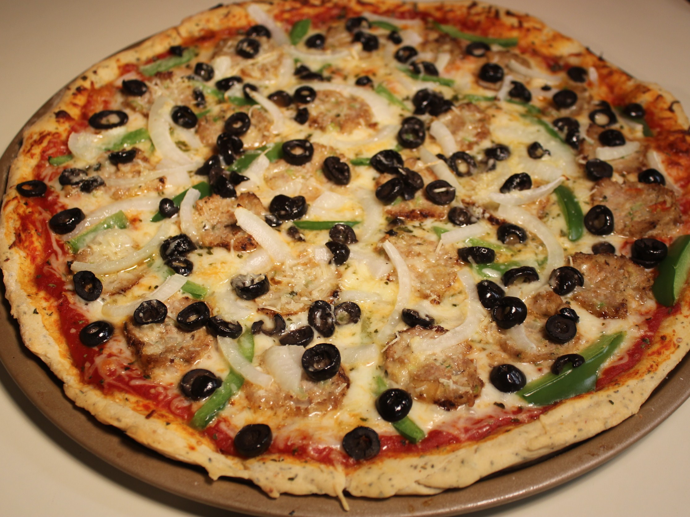 As I mentioned earlier, these meatballs go great as a topping on homemade garlic and herb pizza dough. Add pizza sauce, cheese, green peppers, onions and black olives for one awesome pie!