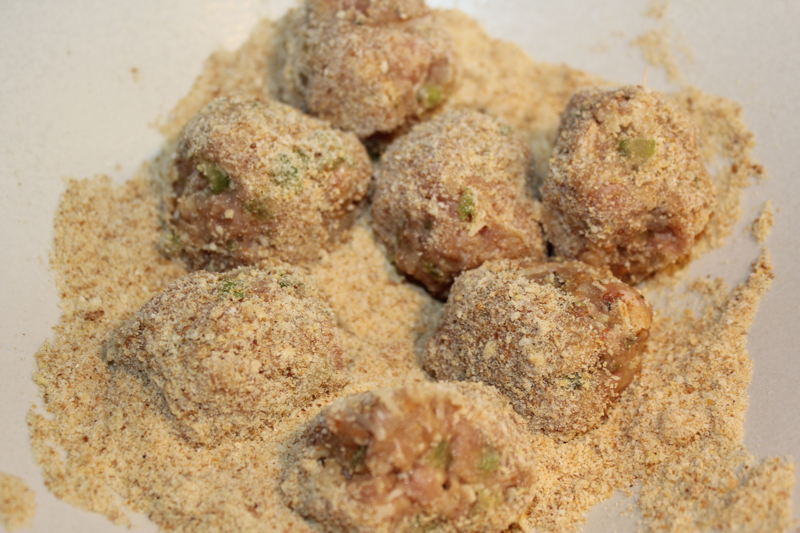 Heat 1 tablespoon of the oil. Roll the meatballs into the dry breadcrumbs.