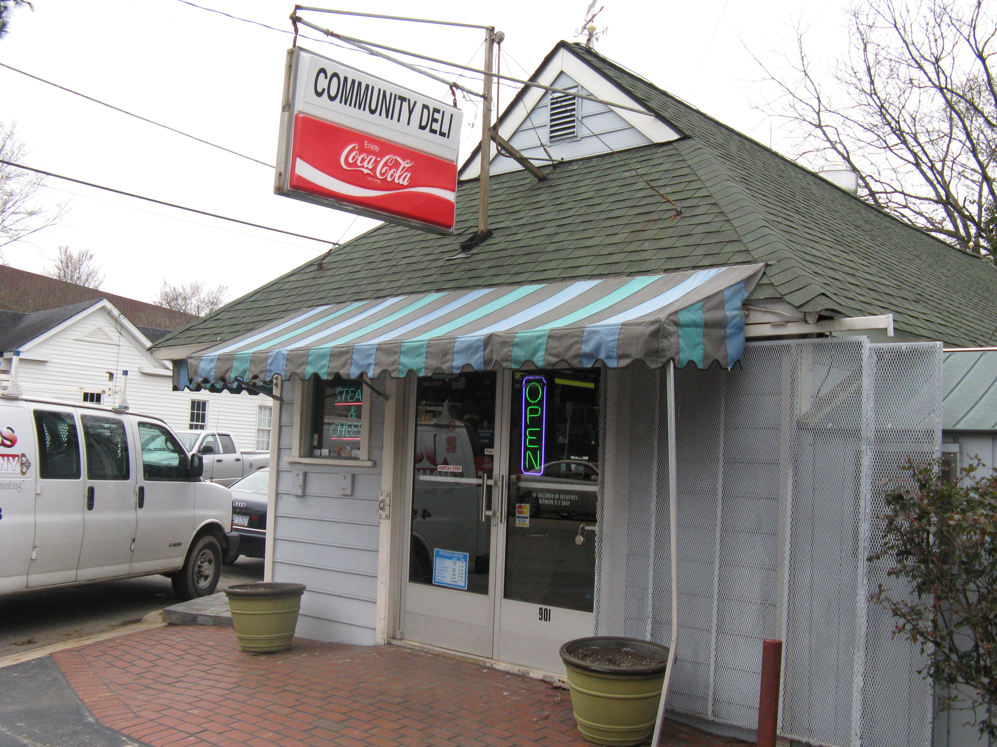 I probably drove by the Community Deli (901 Oberlin Rd., Raleigh, N.C.) a thousand times before finally stopping in a couple of weeks ago. The building itself is fairly nondescript – nothing really special to entice me to try it. Community Deli is close to Cameron Village Shopping Center, so if I’m hungry, I usually go to one of the many good restaurants there. But I kept noticing the daily special sign, with sandwiches, burgers or hot dogs at great prices. So I finally decided to give it a try and have been back several times in the past couple of weeks for the good deli food and the friendly, friendly service.