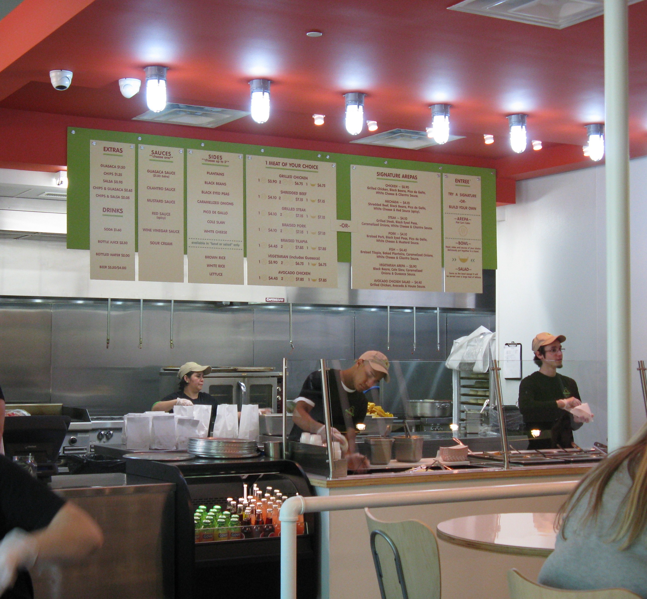 4. Everybody’s been going here and writing about it, and I’d say it lived up to the hype. The comparisons to Chipotle are apt, if inevitable, but the food here is fresher and more vibrant. My wife liked the pork with beans arepa, while my favorite, surprisingly, was the steak with caramelized onions (not always a fan of the steak in these kinds of dishes). The fish/plantains special was my least favorite. Next time I’ll create my own arepa. I loved the arepas themselves – think thick, moist corn tortillas. The sauce for each is served on the side, which is nice but a little confusing: do you pour it on? dip it?. The house “guasaca” sauce (somewhat like a chunky guacamole/pico de gallo hybrid) is delicious. The place is super clean and the staff is friendly. I’m eager to go back for more.