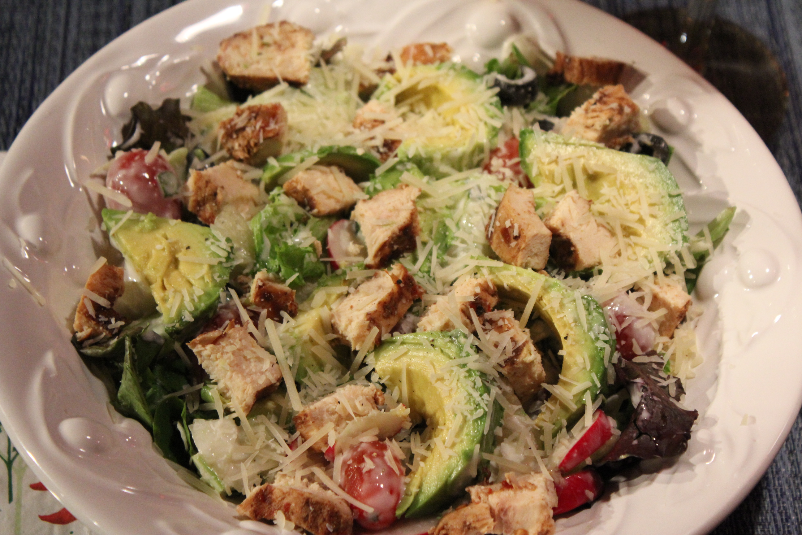 The second salad I had a little more than 48 hours after making it. I had this one for dinner, so added some leftover grilled chicken, sliced avocado and parmasean cheese. I especially loved the veggies that had marinated in the Ranch dressing – what a great combination. The tomatoes and cucumbers were still firm, but not quite as much as the day before. The lettuce was still nice and fresh – no sogginess whatsoever. Grade: A.