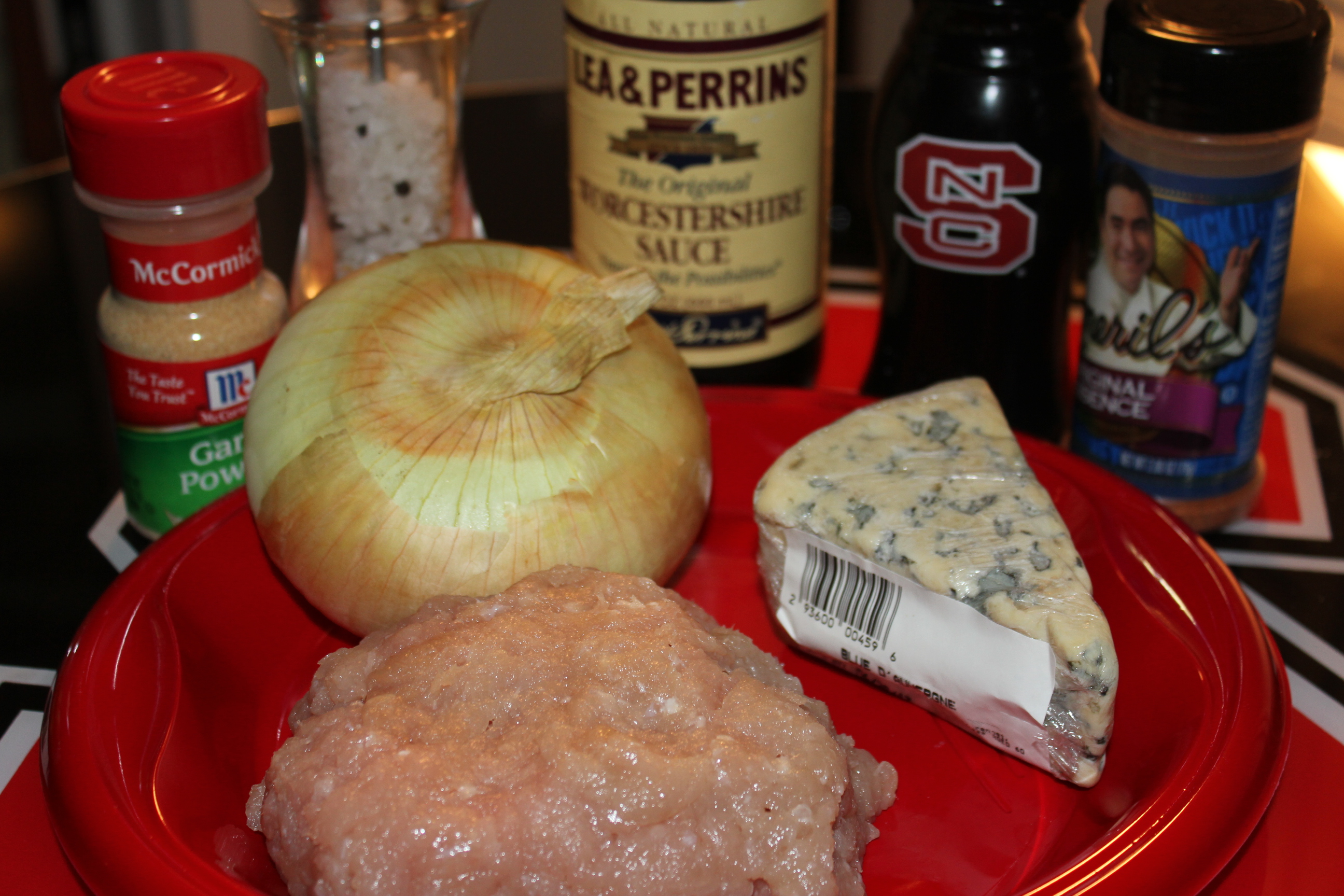 I recently bought some ground turkey breast that was on sale and decided to make some burgers with part of it. I wanted something with a twist, so I stuffed the burgers with creamy and tangy bleu cheese. Great call! These burgers are moist and juicy even though the turkey is so lean – just look at that melted bleu cheese oozing out in the picture above. They have a wonderful flavor, plus they are so easy to make!