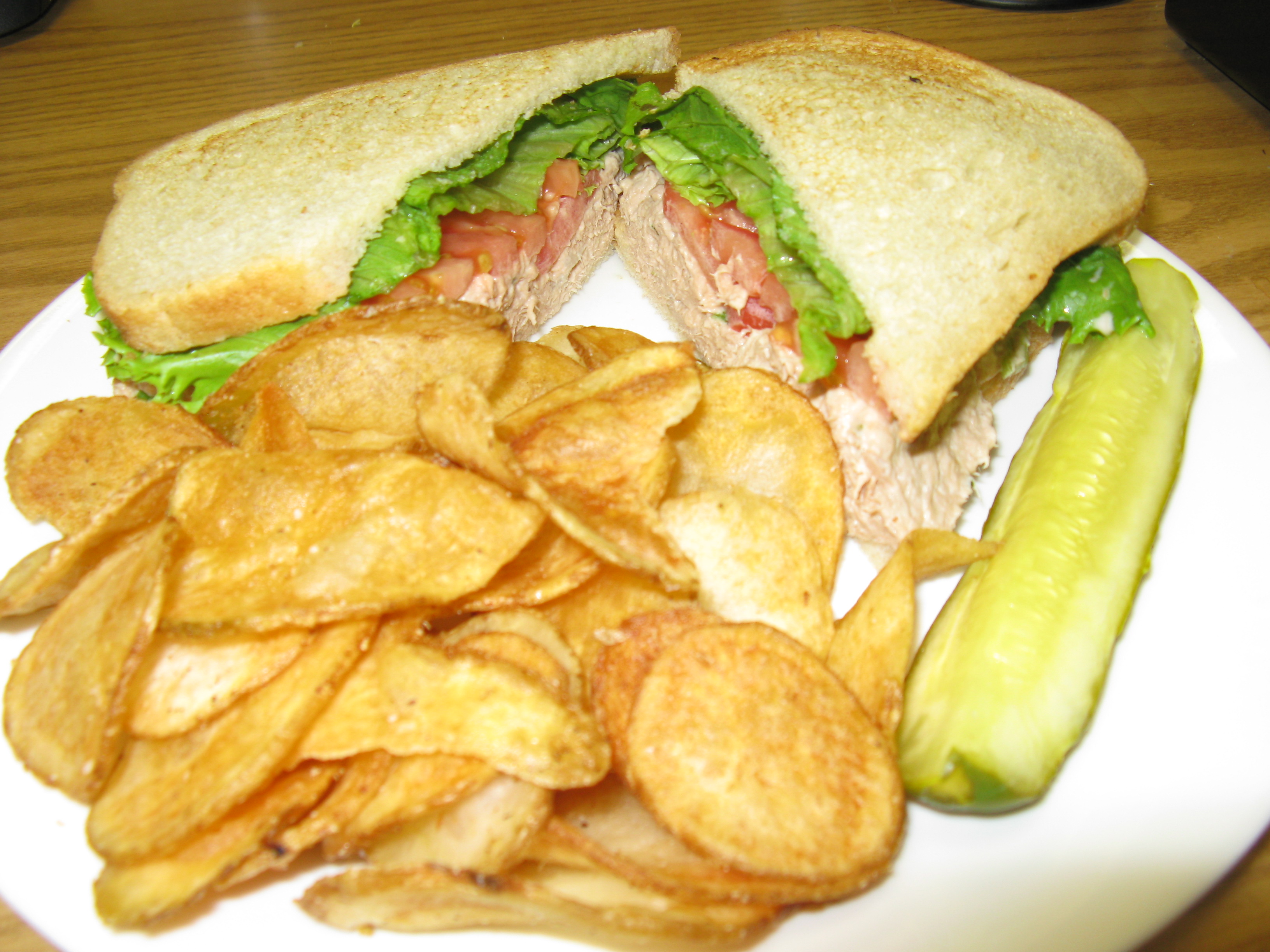 Tuna Salad Sandwich ($8.99) The tuna salad sandwich comes on white toasted bread and is huge! The tuna is mixed with celery, onions and mayo and comes with lettuce and a slice of tomato. It has lots of tuna and is served with yummy homemade potato chips and a pickle (as are all sandwiches at Poppyseed.) I included it in one of my “Ten Tasty Tuna Salad Sandwiches in Raleigh” blog (click here to read more) and it is truly delicious.