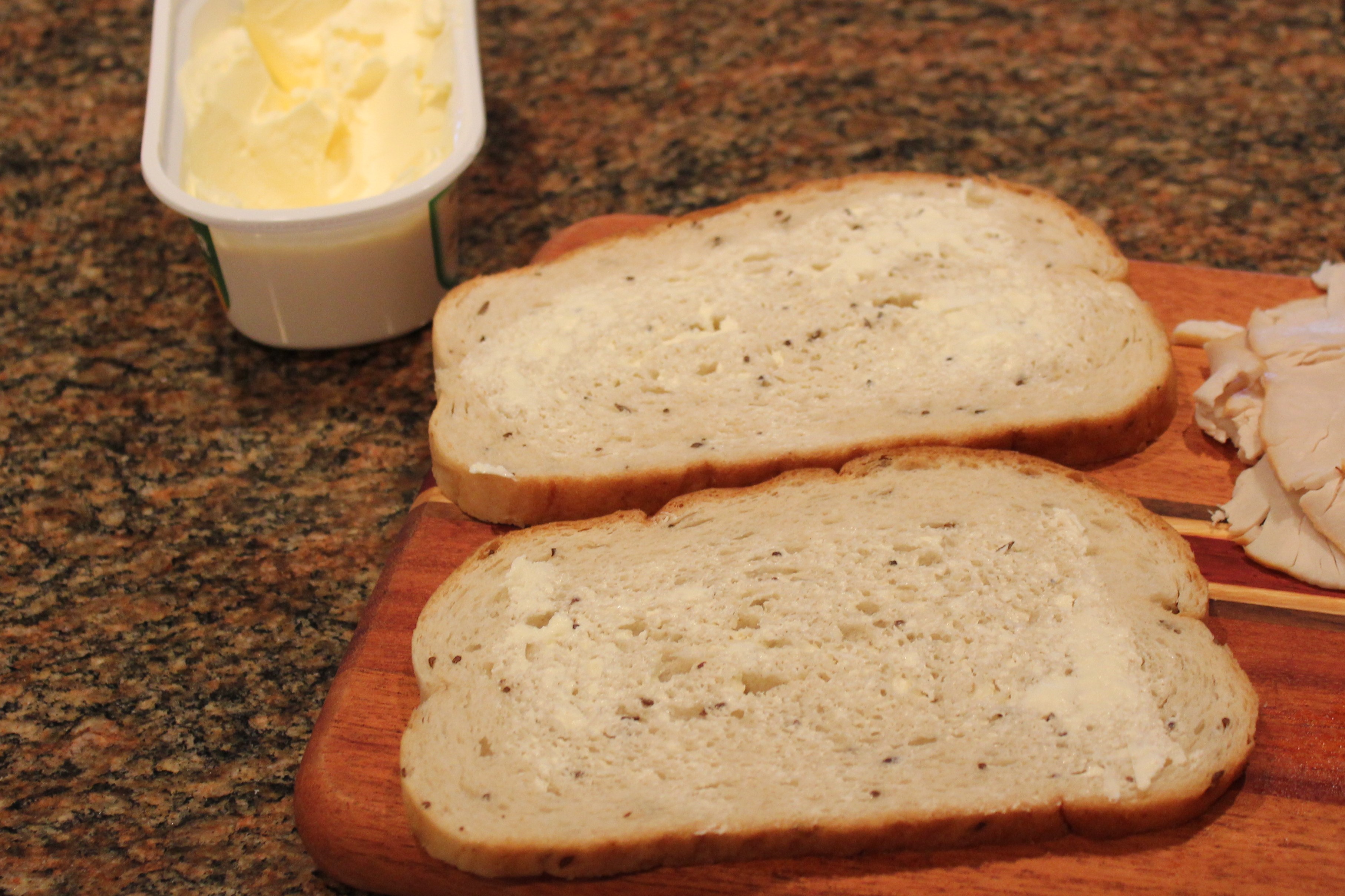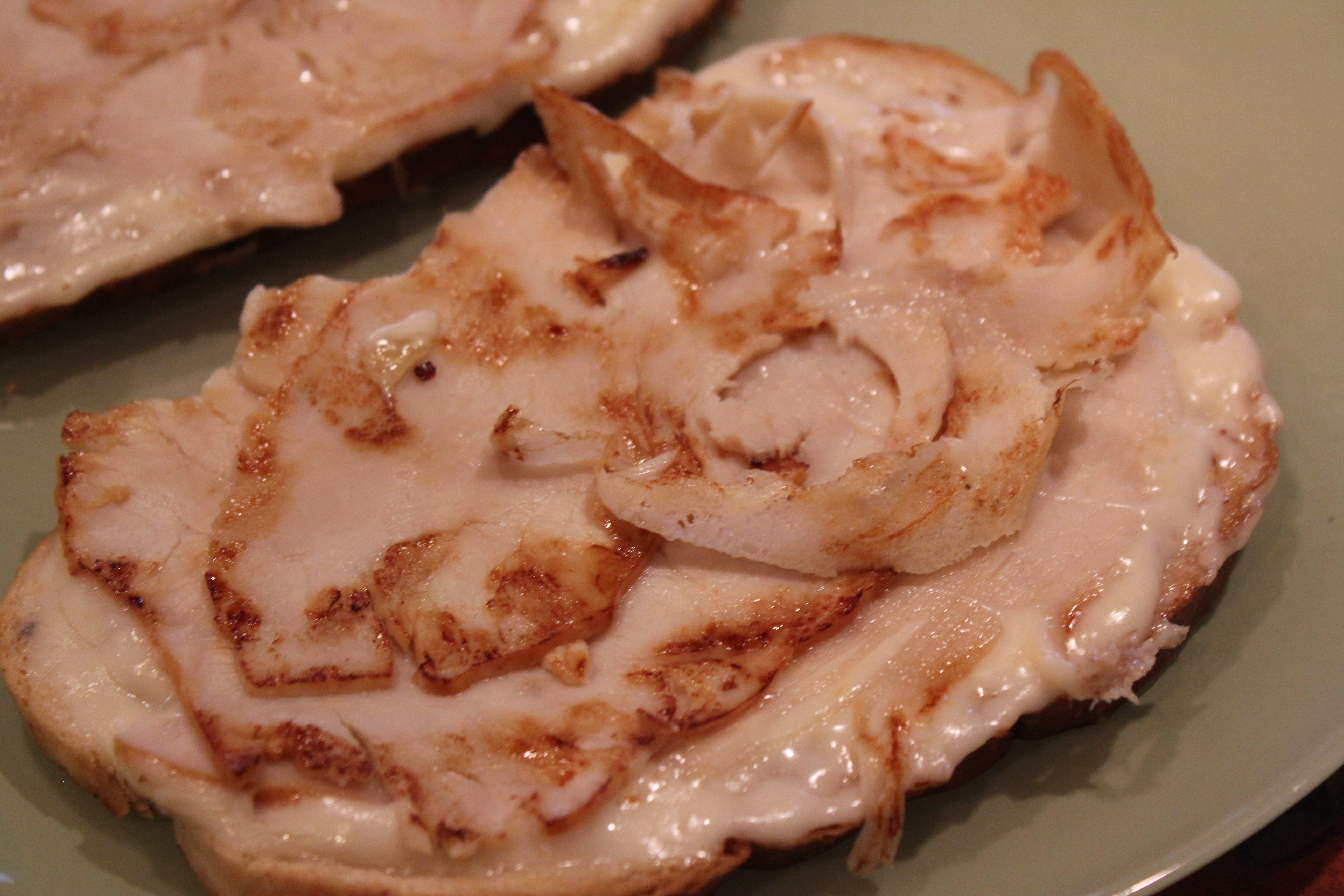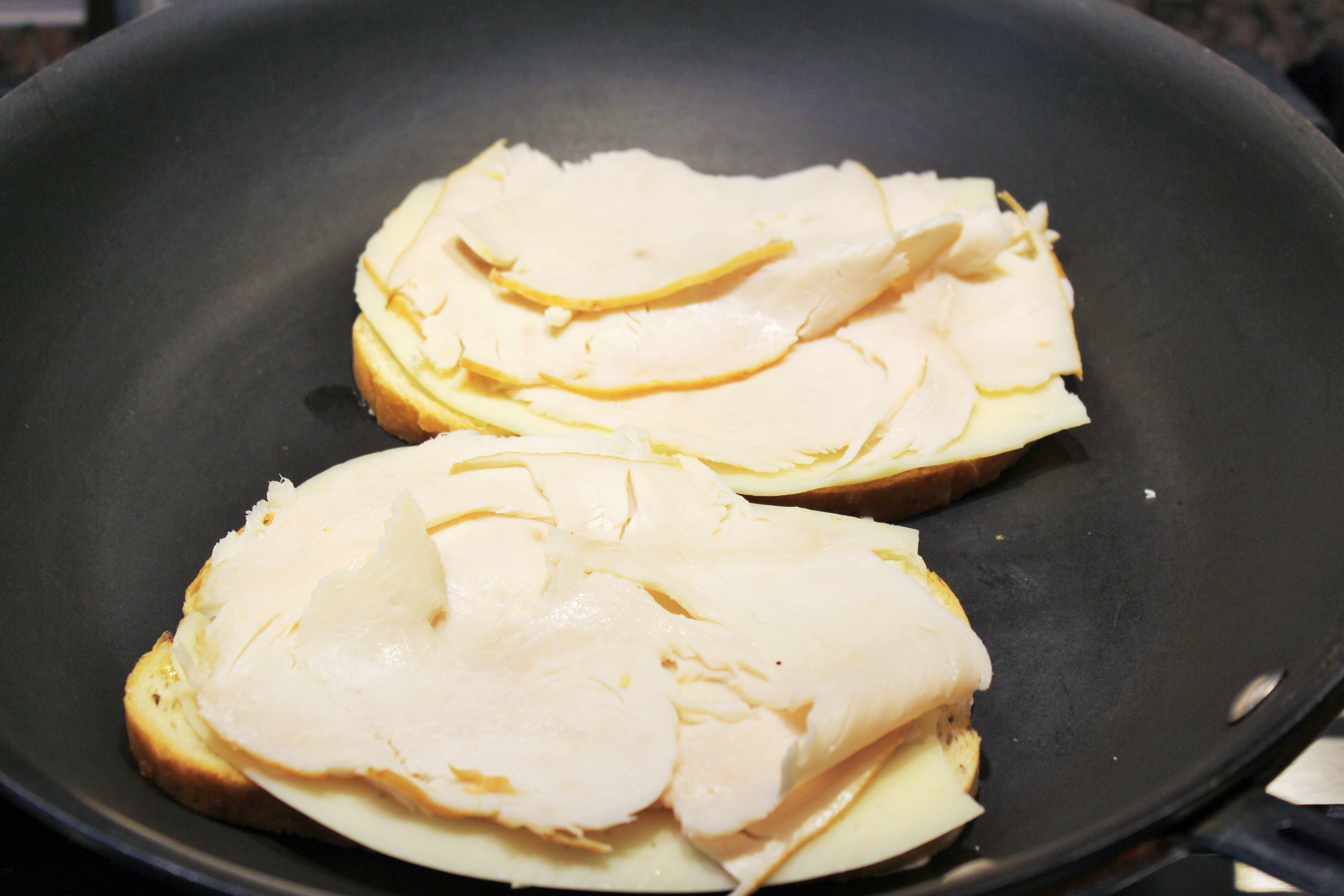 Carefully flip each slice so the turkey is facing down on the griddle and brown the turkey just a bit (doesn’t this look awesome!)