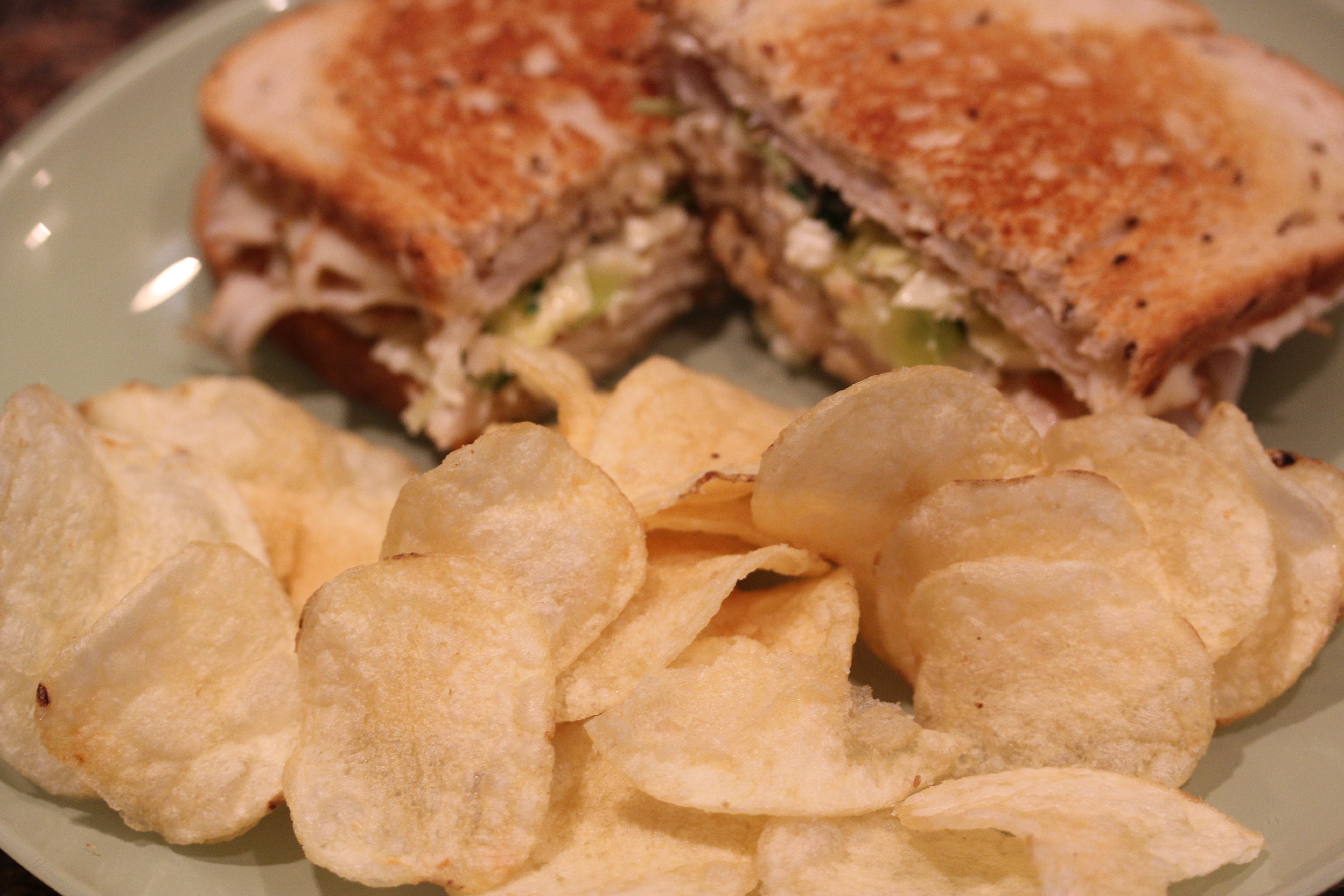 I fell in love with the “Gruben” at Zoës Kitchen several months ago and finally decided to try to duplicate the recipe. Turkey replaces corned beef, but what really makes this sandwich stand out is the marinated slaw that is used instead of the sauerkraut. I’ve tried to duplicate Zoës’ slaw (the restaurant does not give out its recipe) and am quite pleased with my version, which is also great as a stand-alone side dish.
