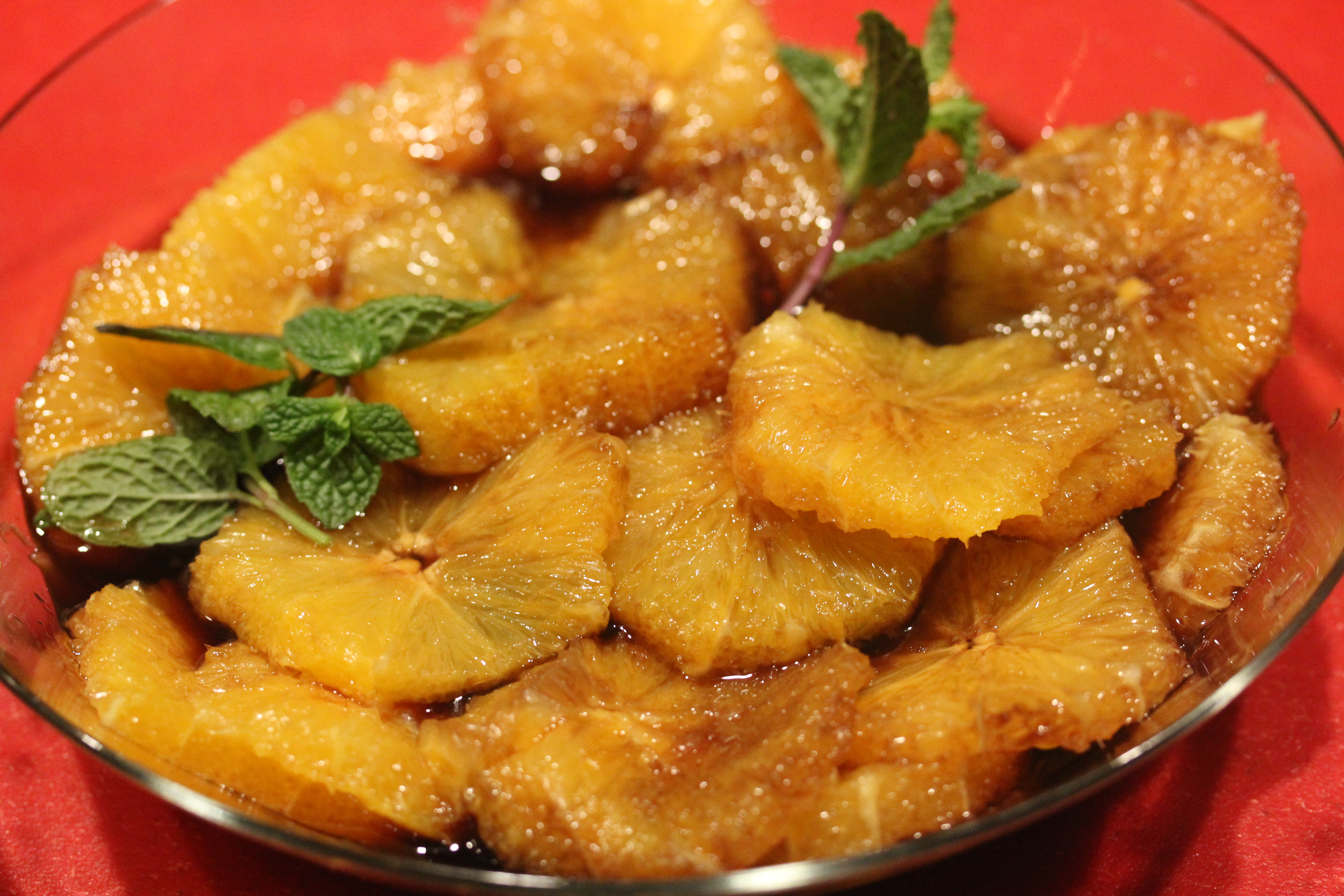 You can garnish both versions of these oranges with mint leaves and serve them “naked” for a wonderfully light and refreshing dessert, or else as a refreshing side to vanilla ice cream or chocolate brownies. These oranges also kick up a basic screwdriver!