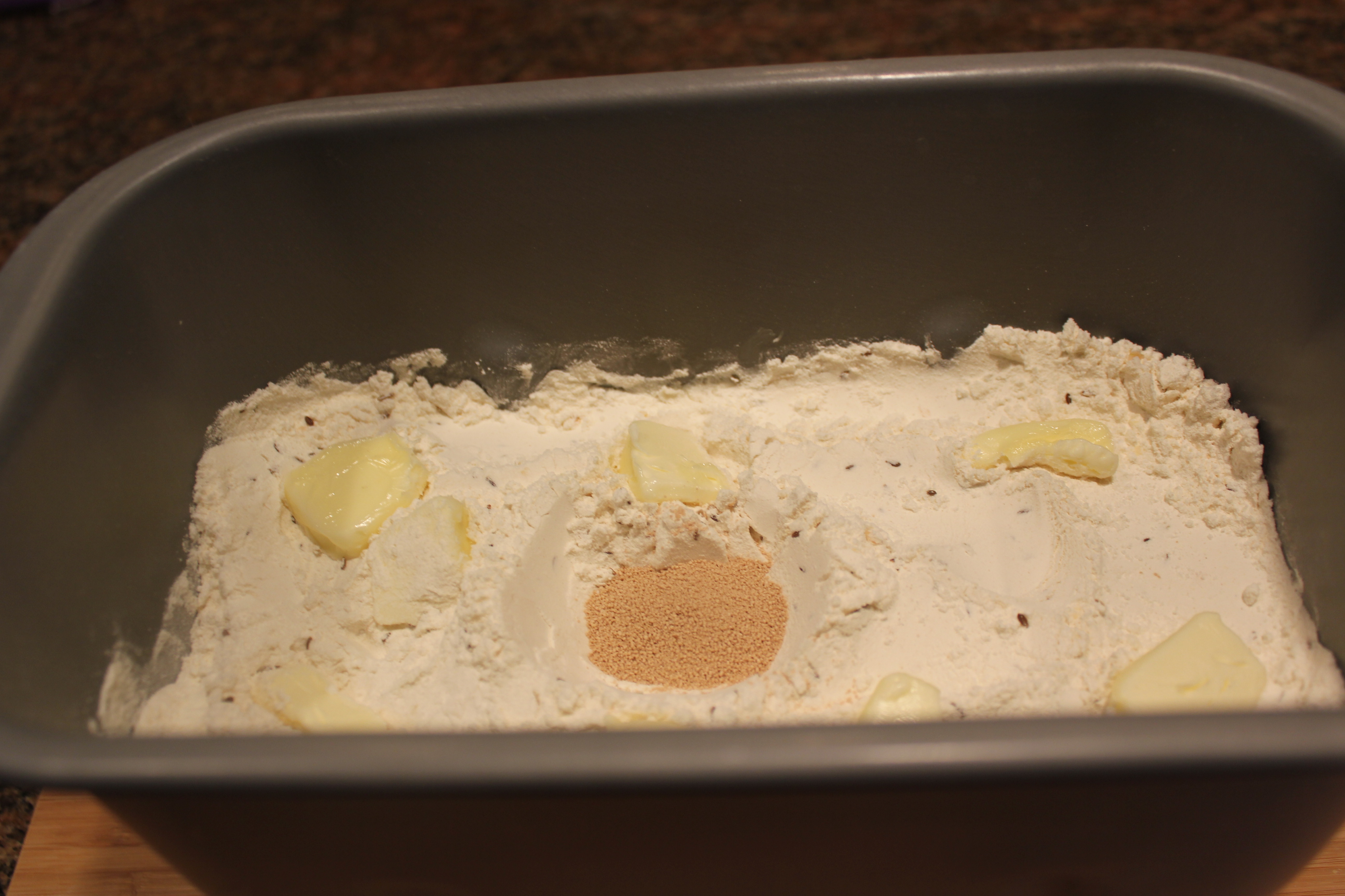 I follow the instructions for my particular bread machine (Zojirushi, which I love!) as far as the order in which you add the ingredients, so you may need to adjust the sequence a bit depending on the type of machine you have.