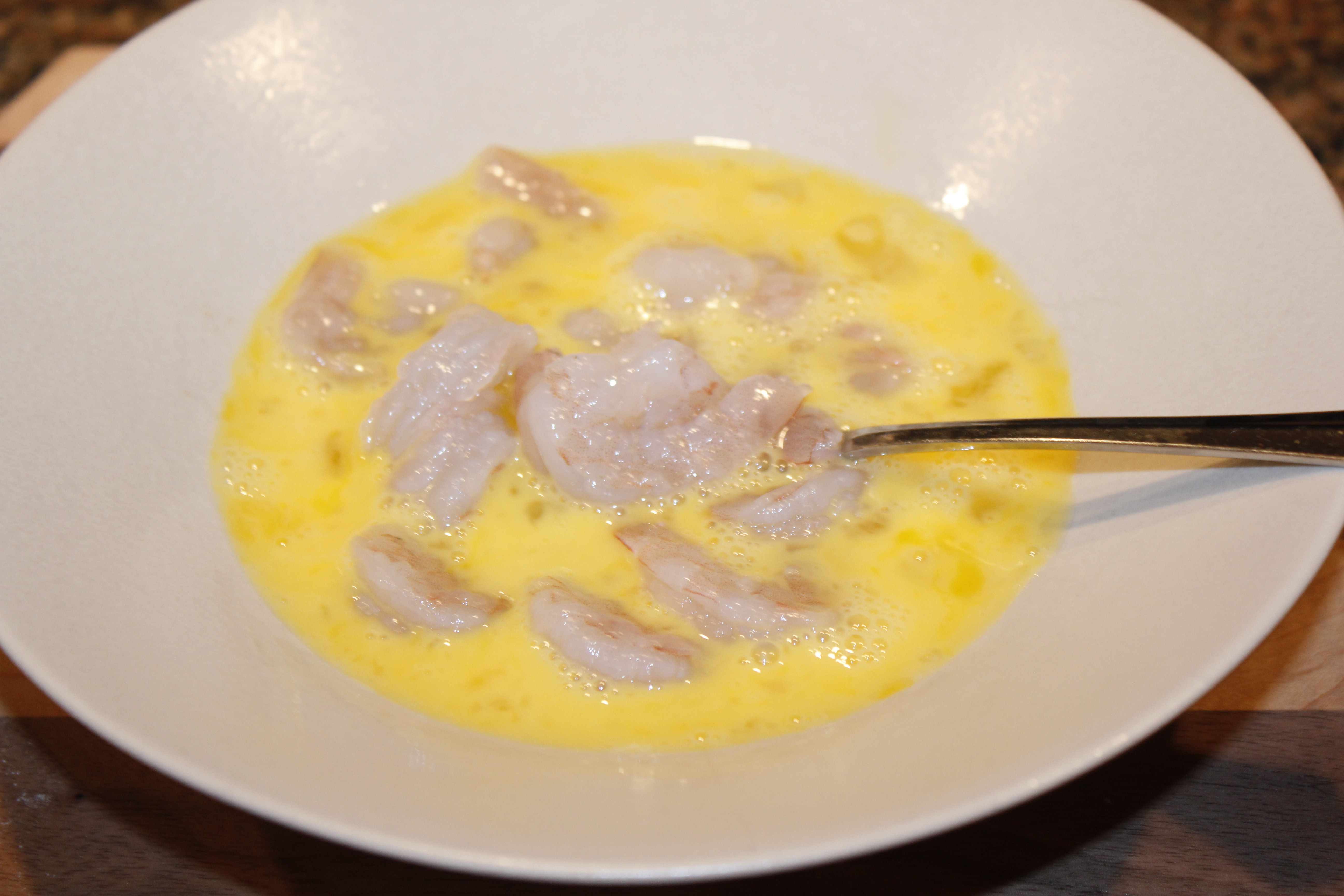 Coat the shrimp with the egg mixture, shaking off any excess.