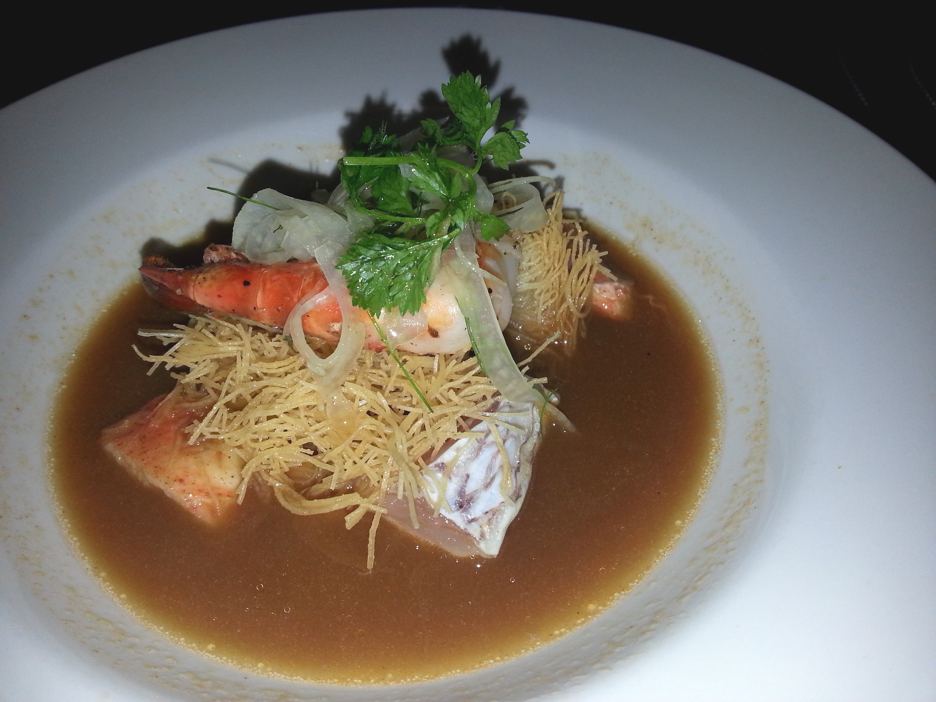 Course 3: American Prawn Cooperative Fumé, Grilled Corn, Lobster, Snapper and Fennel.