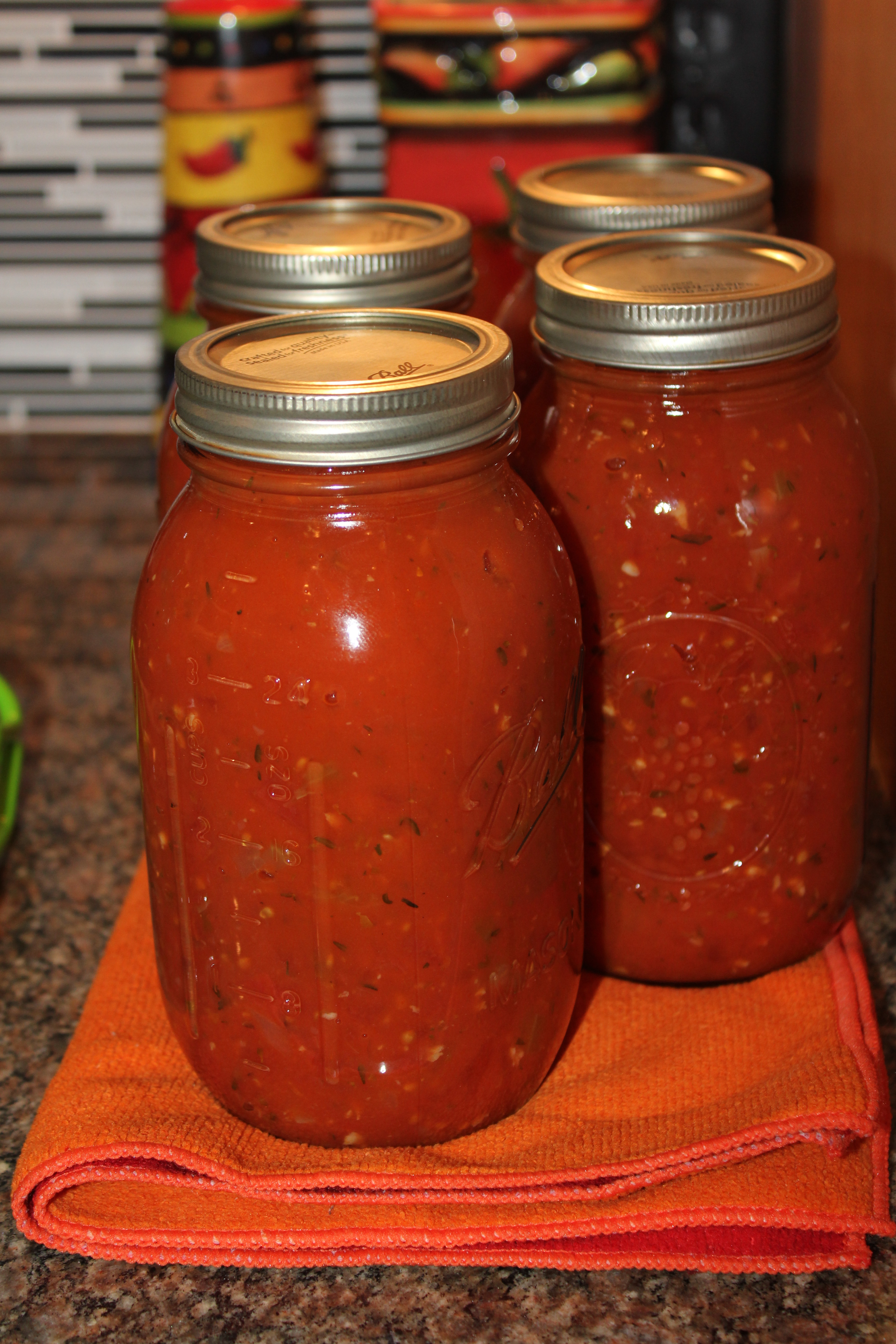 Remove any air bubbles, wipe the rim of each jar to remove any spilled sauce and adjust the two-piece caps. Once you have finished filling all of the jars, process the marinara sauce in the water canner for 40 minutes.