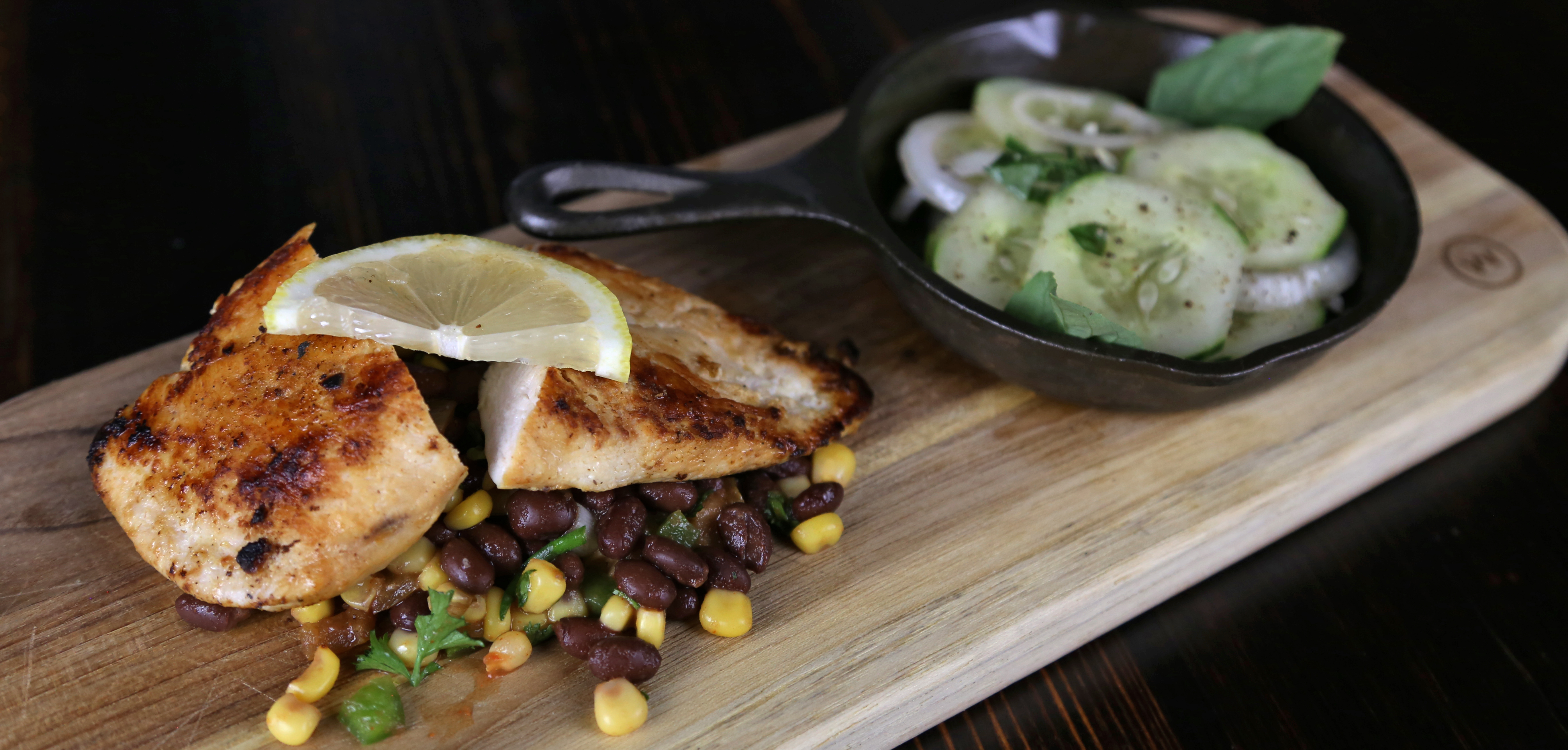 Your “Rustic Lemon Chicken with Black Bean and Corn Fiesta Salad and a Cucumber Onion Medley.” looks like a wonderful meal! I am loving the Black Bean and Corn Fiesta, definitely going to make this! 🙂