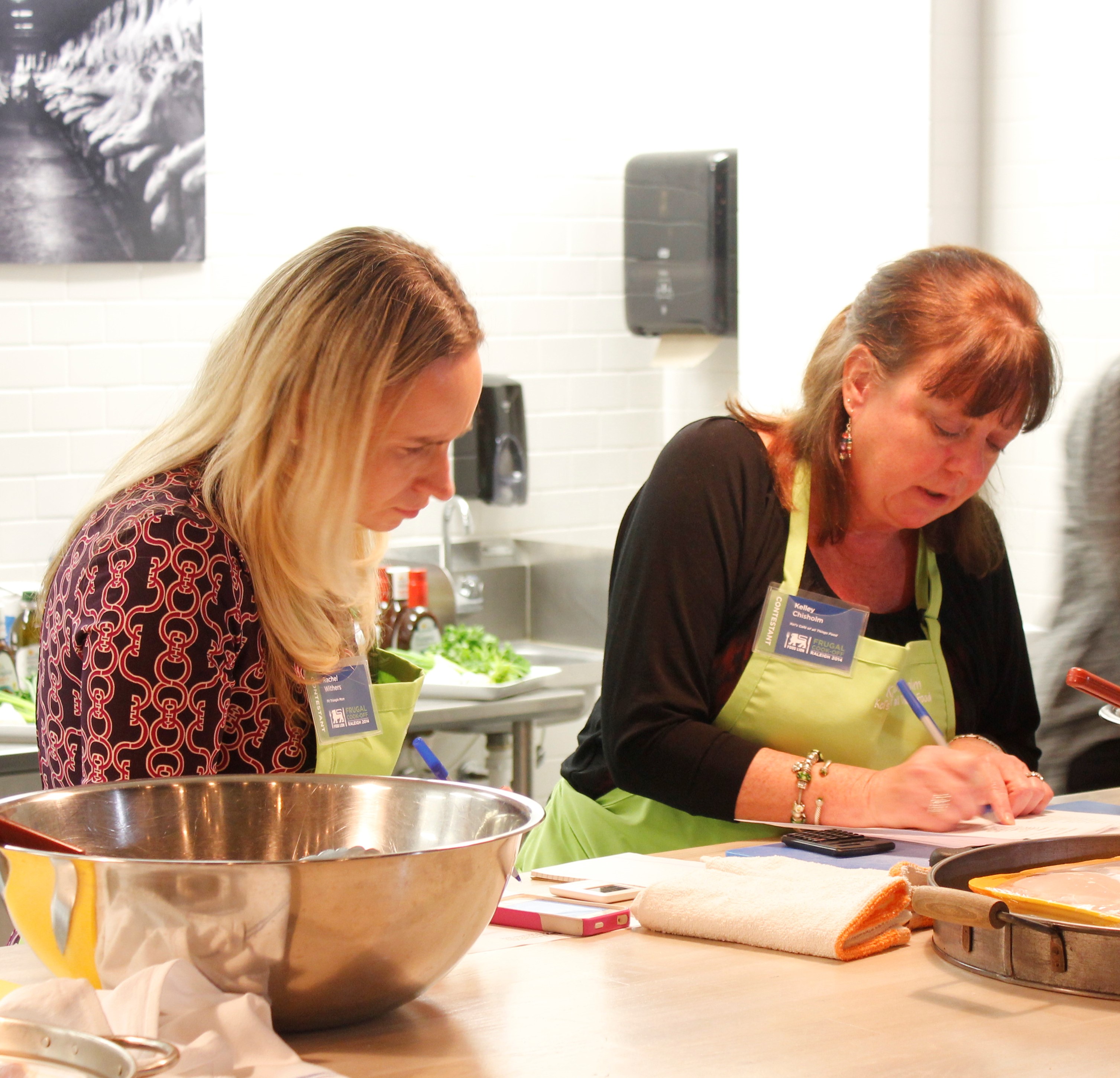 Two days before the actual competition, the contestants found out who their teammates were. I was thrilled to be paired with Rachel Withers. Her blog is FitTriangleMom (http://www.fittrianglemom.blogspot.com/) and I knew she would take a healthy approach to our menu, which needed to consist of an entrée (the secret ingredient, BTW) and two sides. We were told upfront that the secret ingredient would be tilapia filets, boneless chicken breasts, boneless pork chops or ground turkey, so both of us looked for creative  and frugal recipes for all of these. Rachel created a “secret” board on Pinterest where we could share our ideas, which was a great way to stay organized.