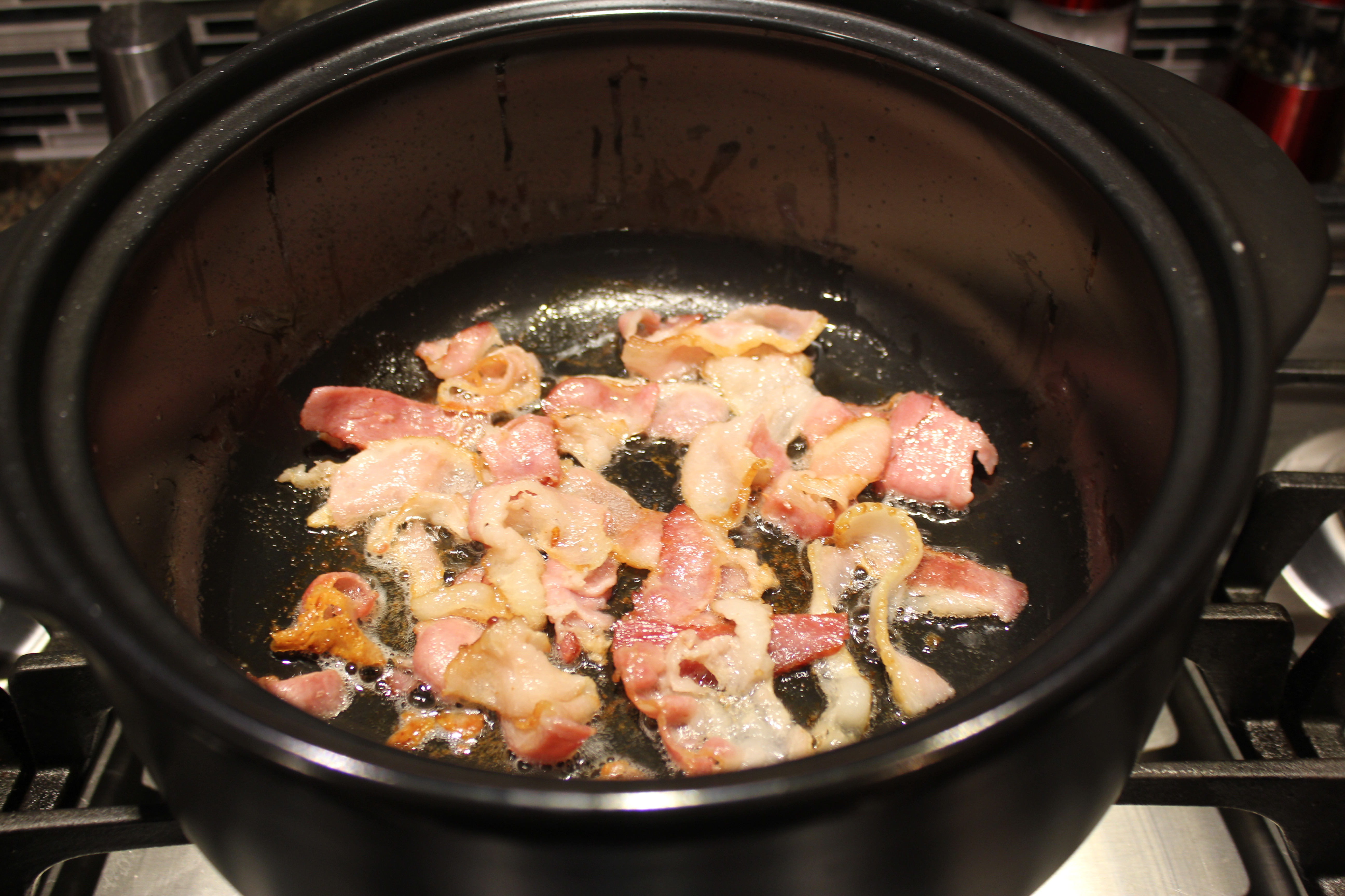 Preheat oven to 350 degrees F. Cook bacon over medium heat in Rockcrok® until crisp. Drain on paper towels. Leave 1 tablespoon bacon grease in Rockcrok® and save the rest, if there is any, for another use.