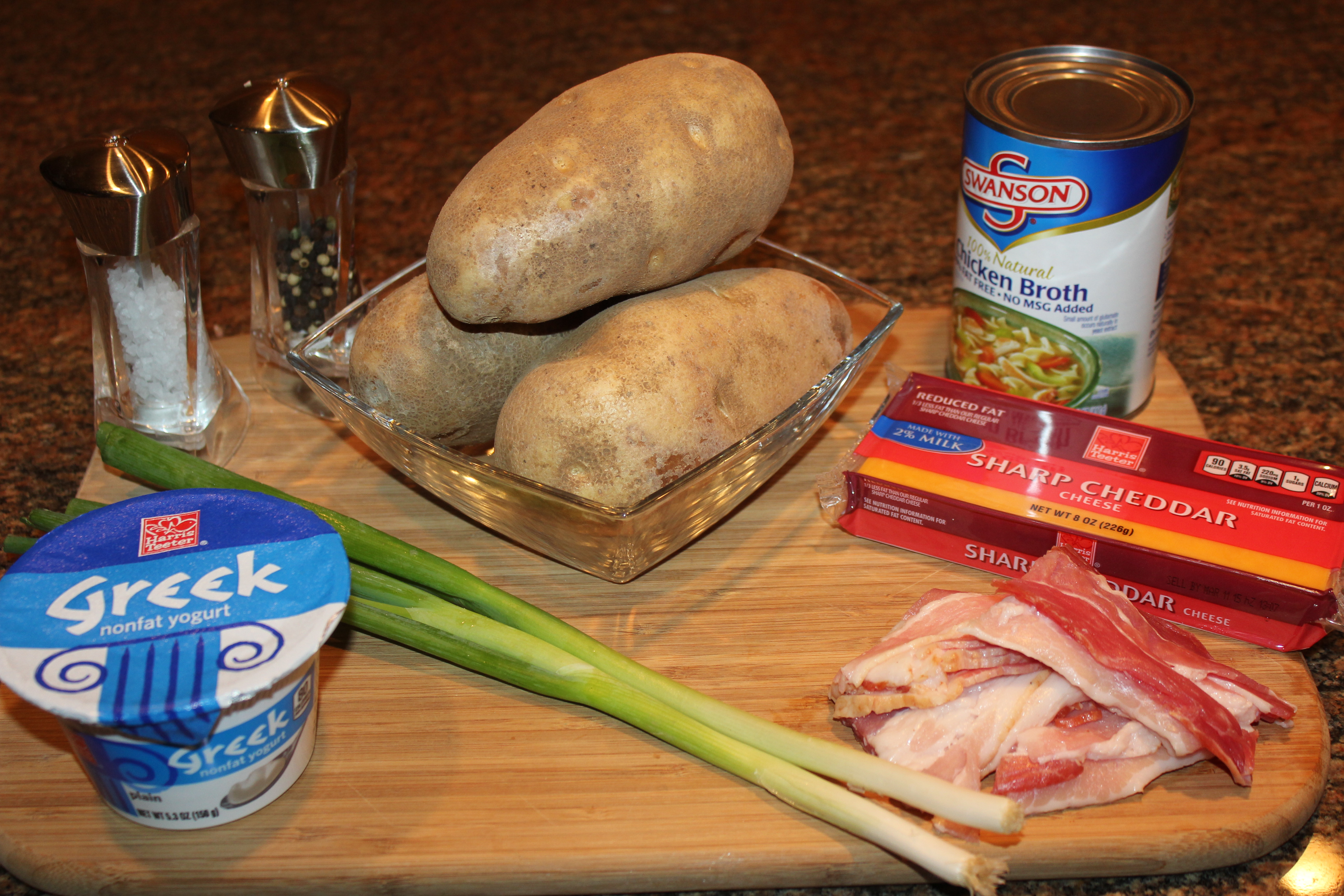 This is one of the first recipes I made in my awesome Pampered Chef Rockcrok® casserole** and it is definitely a keeper! It is so easy to make and the results are absolutely yummy — of course, how can you go wrong with a dish that features potatoes, bacon and cheese? I modified Pampered Chef’s recipe some by using a bit more bacon and cheese. Also, I used nonfat yogurt instead of low-fat, and reduced-fat cheddar instead of regular. But you could never tell the difference, and it does reduce the guilt factor.